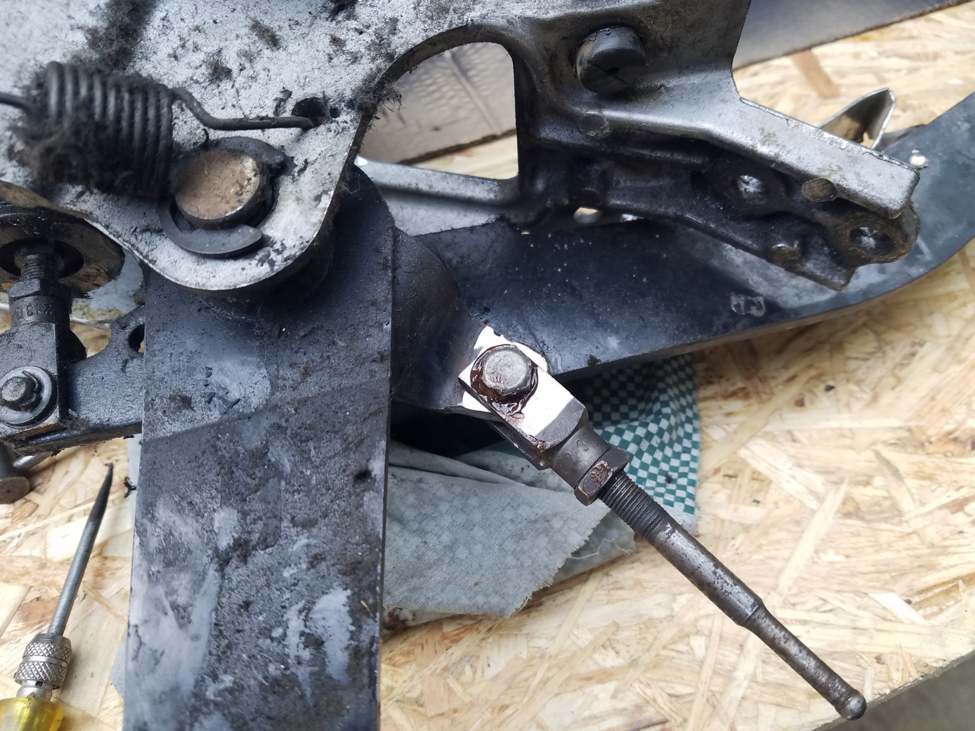 Понадобилось съездить в соседний город и в пути вдруг почувствовал что разгон стал очень тупым при хорошо развивающихся оборотах двигателя. Тут же понял что педаль сцепления не поднялась на привычную высоту. При последующем нажатии, педаль осталась ещё ниже, а сцепление фактически полностью пропало, а ехать то надо. В общем съездил постоянно поднимая педаль ногой и по приезду сразу же поехал снимать узел. Сложно, муторно, но с товарищем, он же по совместительству и сварной, управились за пару часов )