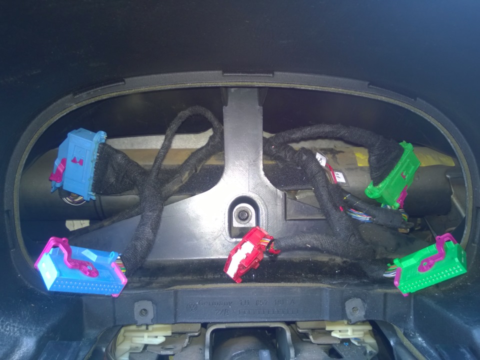 Заранее был наслышан, что с переходниками приборку вставить очень тяжело, с этим учетом я сделал провода с красным и синим разъемами по-длиннее и приборка залетела как домой)) совсем немного сложнее чем без них.