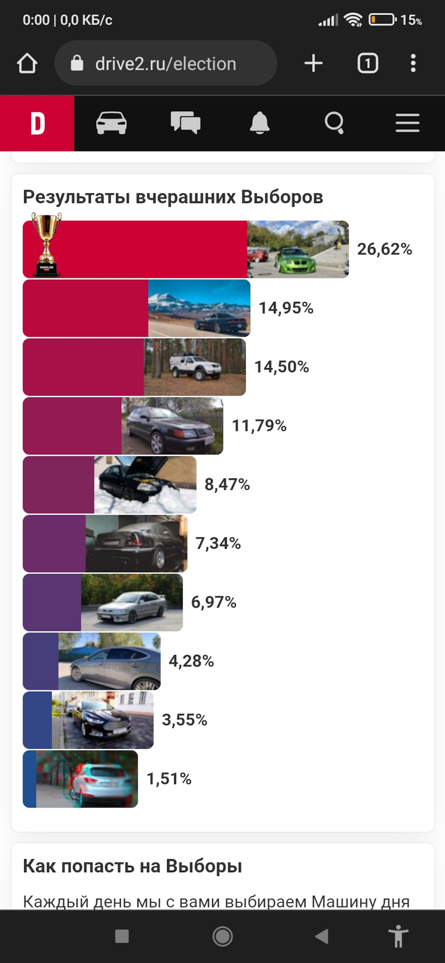 Впервые за много лет мой автос участвует в выборах "Машина дня", да ещё в ДР супруги, символично.))) Друзья, пожелайте мне удачи и поддержите кто может!)) Первый блин, как говорится…))