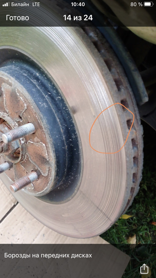 Биения нет дисков… Покатаюсь так. Потом сменю диски и колодки. Диски обыкновенные на семёрке, колодки никакие, поэтому такой эффект практически на всех семерках, особенно тех, кто в грязи — на грунтовки в межсезонье заезжает