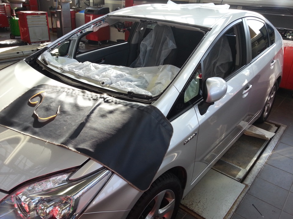 Для замены стекла я снял механизм стеклоочистителей, обшивки стоек и верхнюю часть приборной панели. Работу по вырезке старого стекла и вклейке нового выполнял специалист со спец. инструментом.