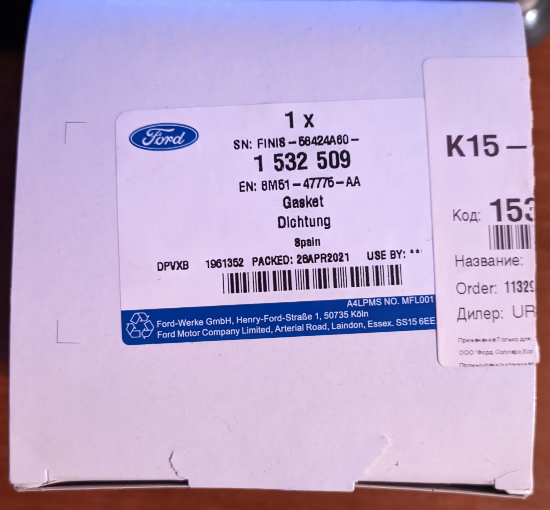 Также, соответственно, купил новую прокладку, которая крепится между накладкой крышки багажника и кузовом: 1532509. Причем, снова обнаружилась очередная интересная вещь: никаких аналогов или заменителей у данной запчасти просто нет, ну либо я плохо искал, хотя просмотрел и прочитал много информации! Есть только оригинал форд — благо он стоит не дорого: 1460 руб. Она прорезиненная и клейкая с одной стороны.