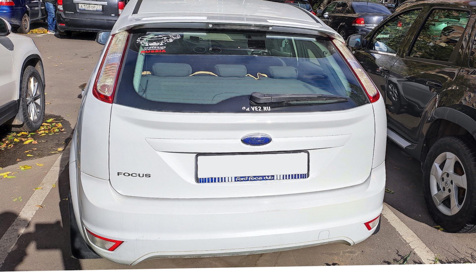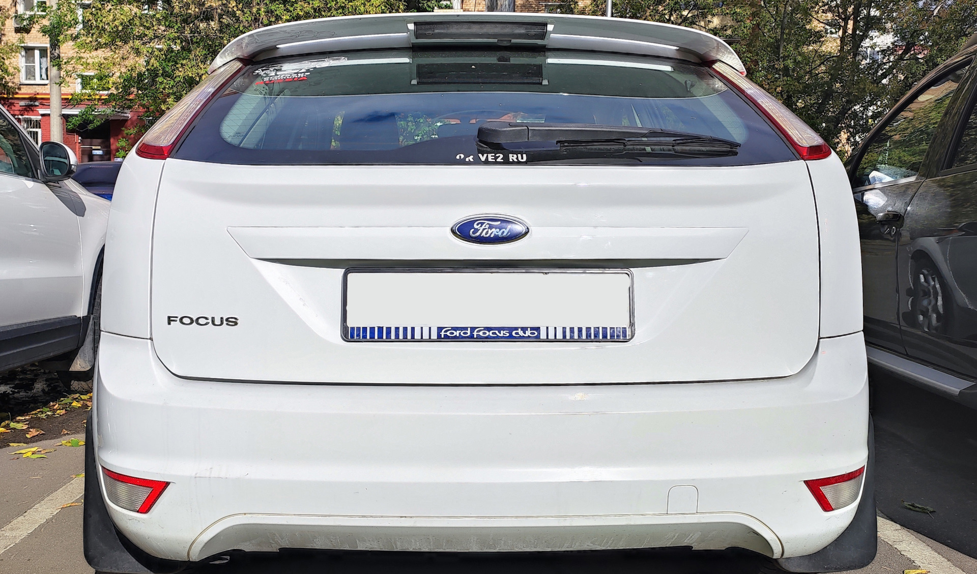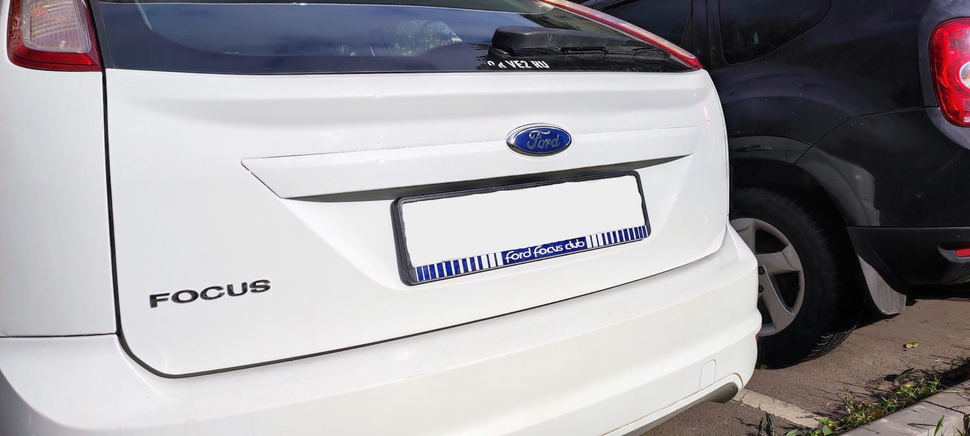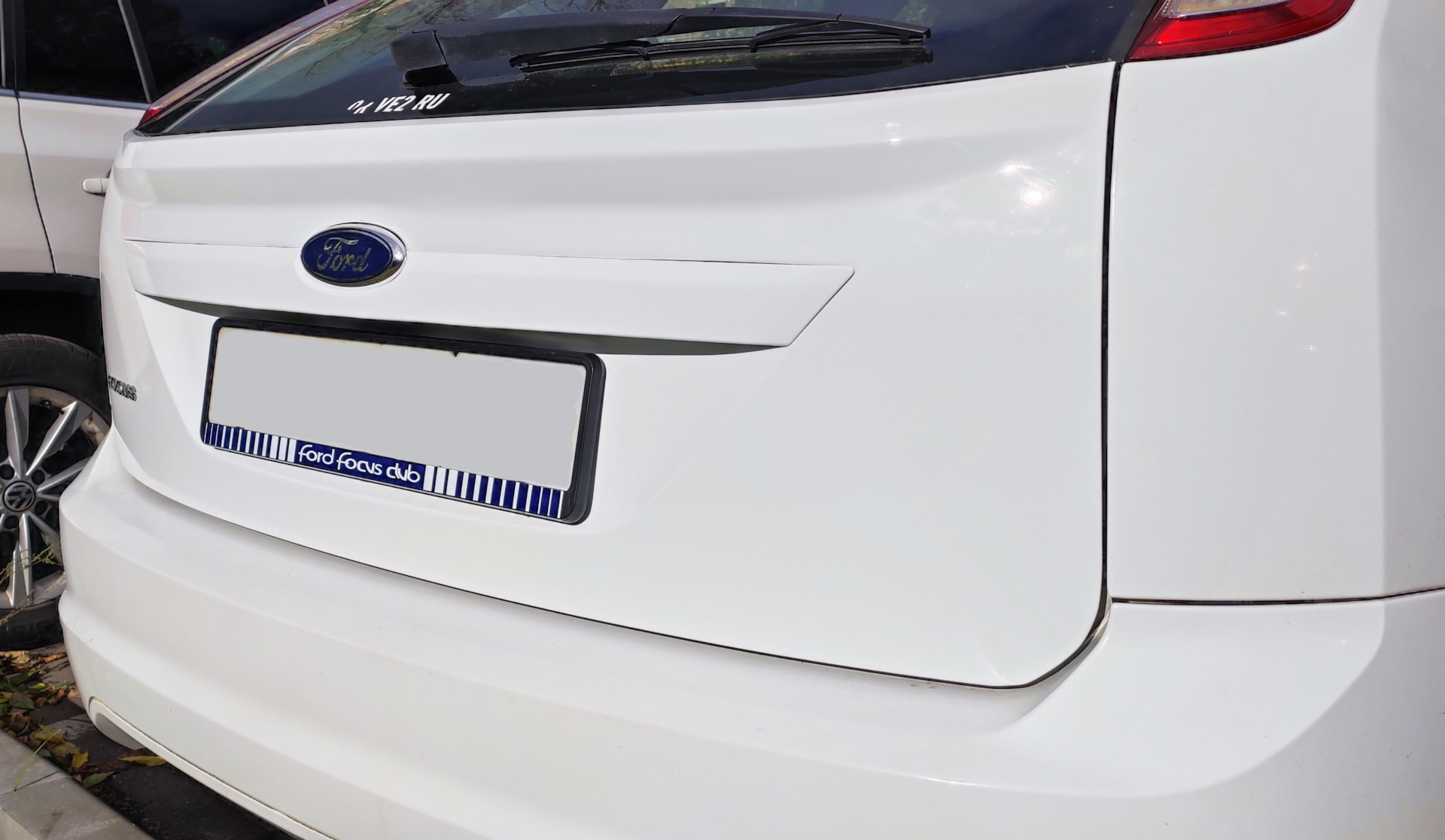 Со временем, в месте соприкосновения хромированной накладки крышки багажника и самой крышки, сошла краска и из-за натертостей образовалось ржавчина. Это, к сожалению, как и арки задних крыльев в месте их соприкосновения с бампером — болезнь фокусов, да и не только, а многих марок авто.
