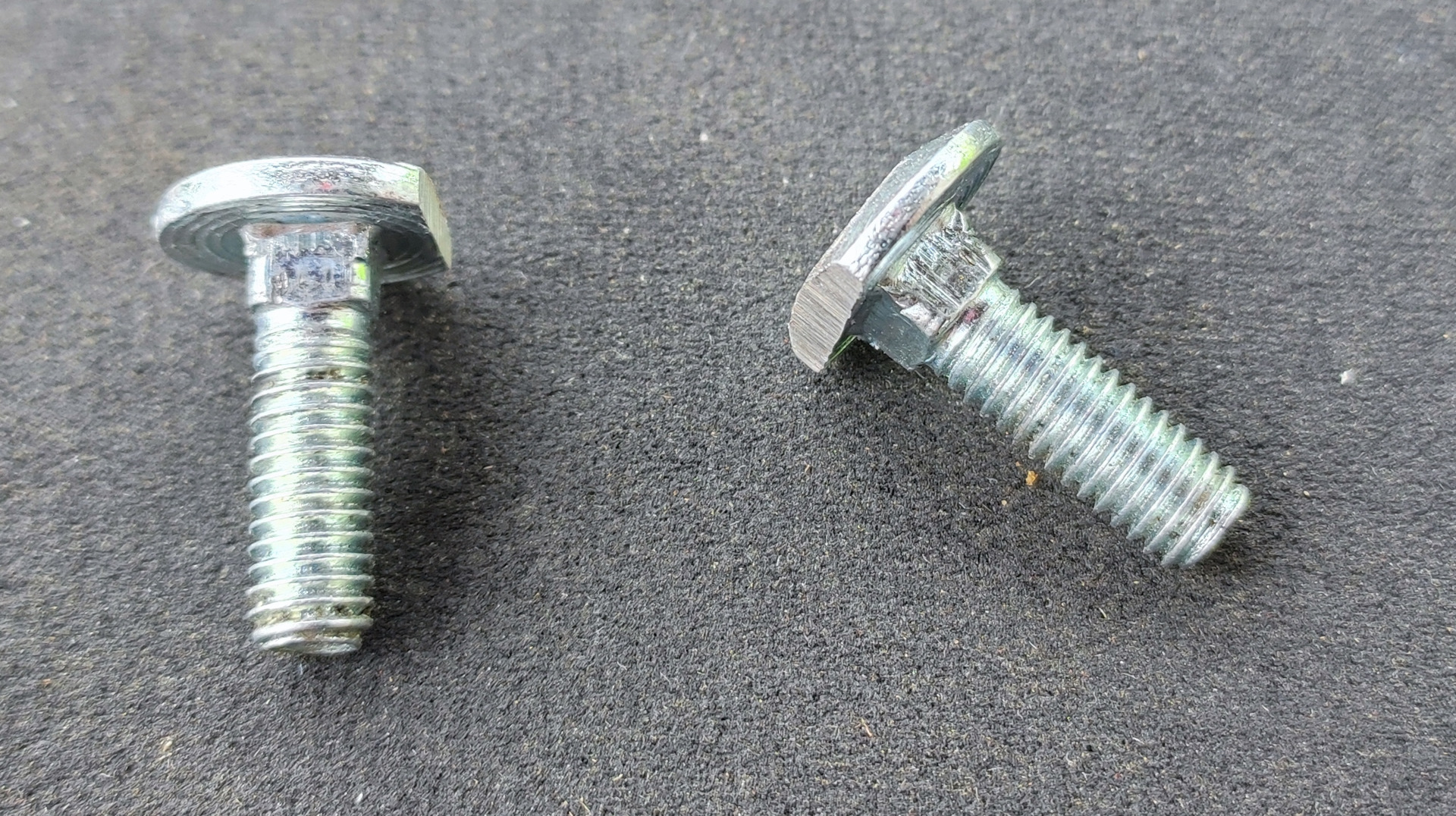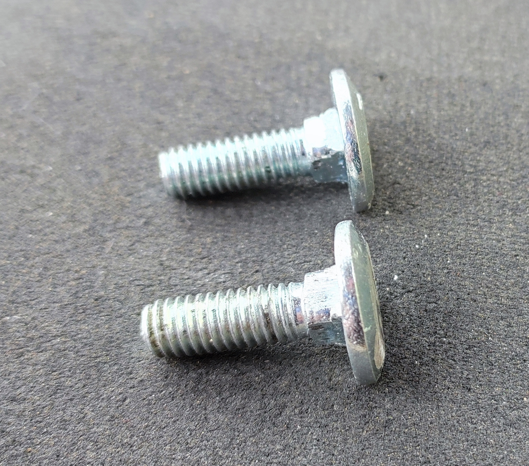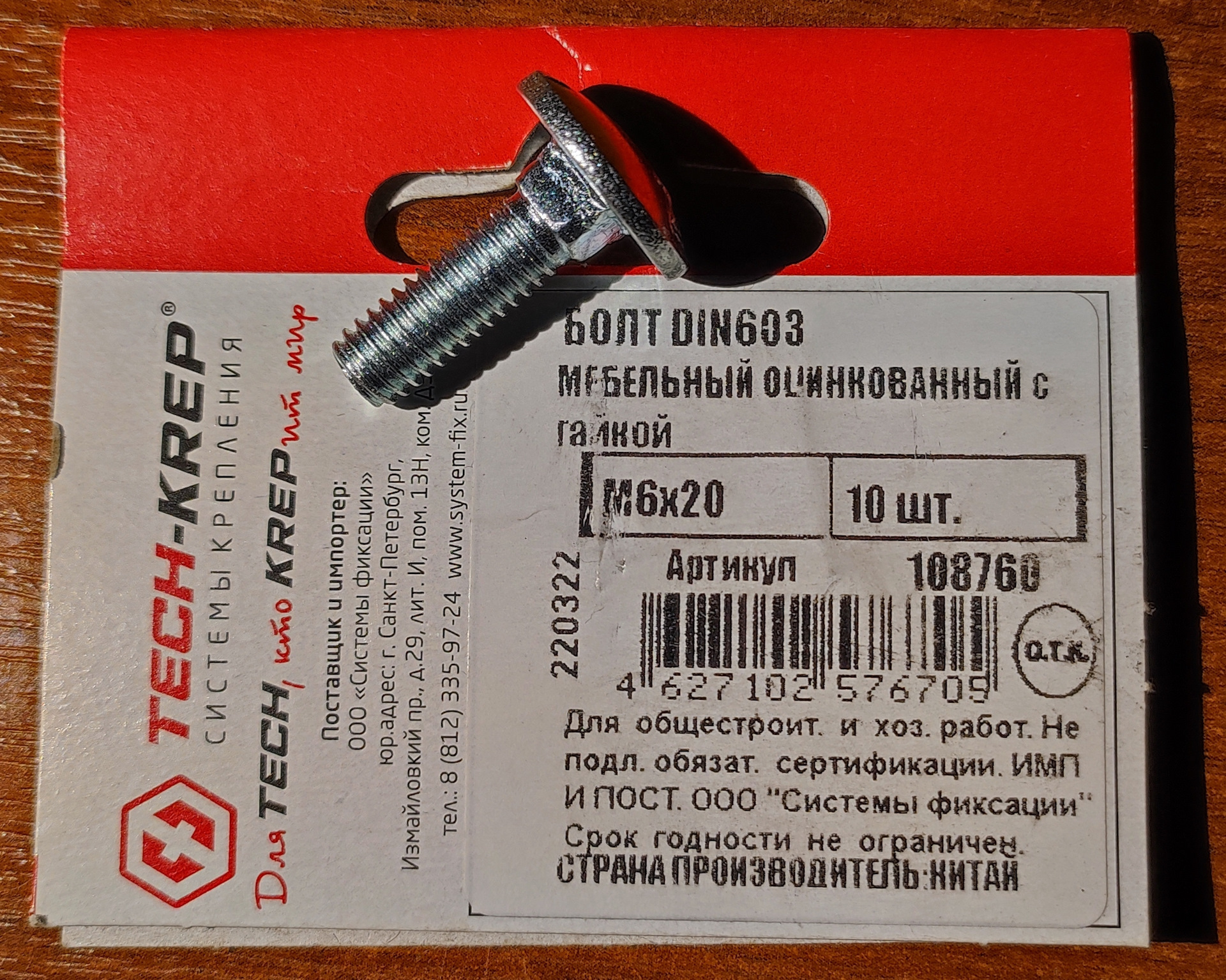 Так что вариантов два: либо искать б/у болты на разборках, либо использовать второй вариант: мебельные болты, у которых потом нужно будет подточить шляпки сверху и с одного бока, чтобы они лучше входили в пазы накладки! Выбрал второй вариант, чтобы не связываться с ржавыми б/у болтами, которые естественно ржавеют. Купил комплет из 10 мебельных болтов с гайкой Tech Krep DIN 603 М6x20 за 70 руб. Артикул: 108760