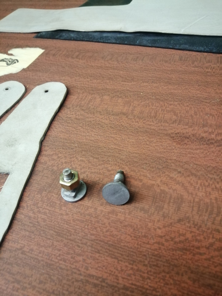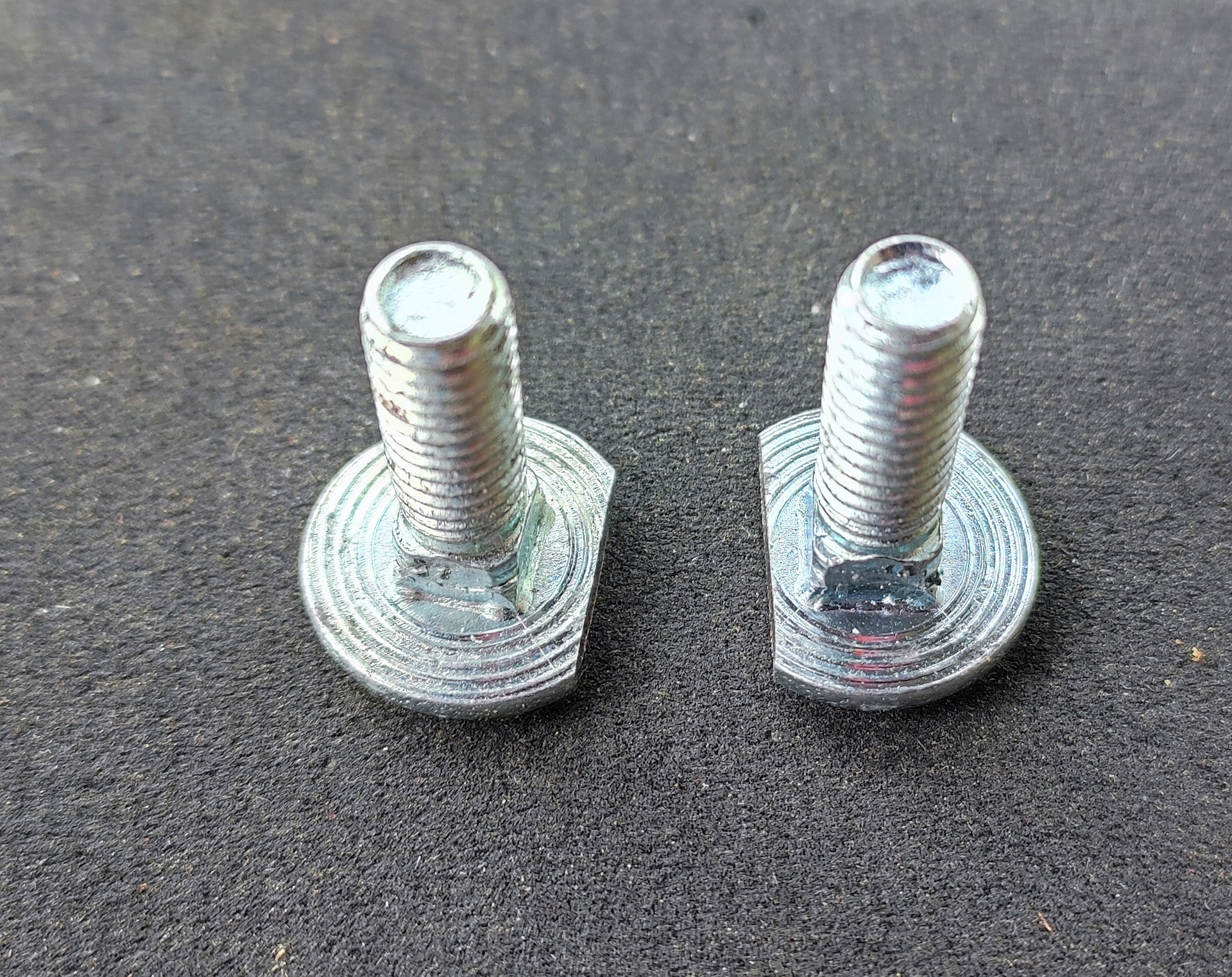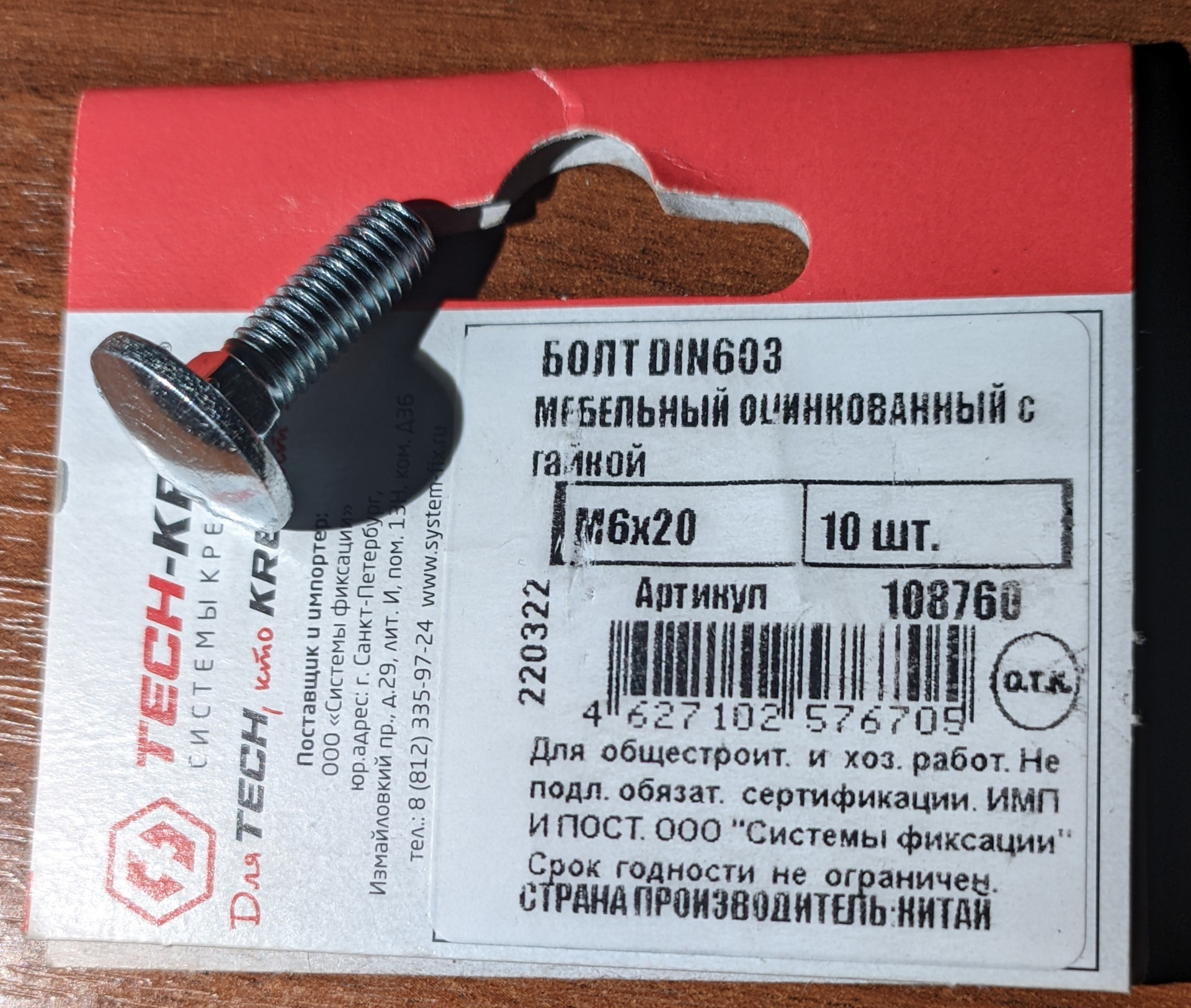 Так что вариантов два: либо искать б/у болты на разборках, либо использовать второй вариант: мебельные болты, у которых потом нужно будет подточить шляпки сверху и с одного бока, чтобы они лучше входили в пазы накладки! Выбрал второй вариант, чтобы не связываться с ржавыми б/у болтами, которые естественно ржавеют. Купил комплет из 10 мебельных болтов с гайкой Tech Krep DIN 603 М6x20 за 70 руб. Артикул: 108760