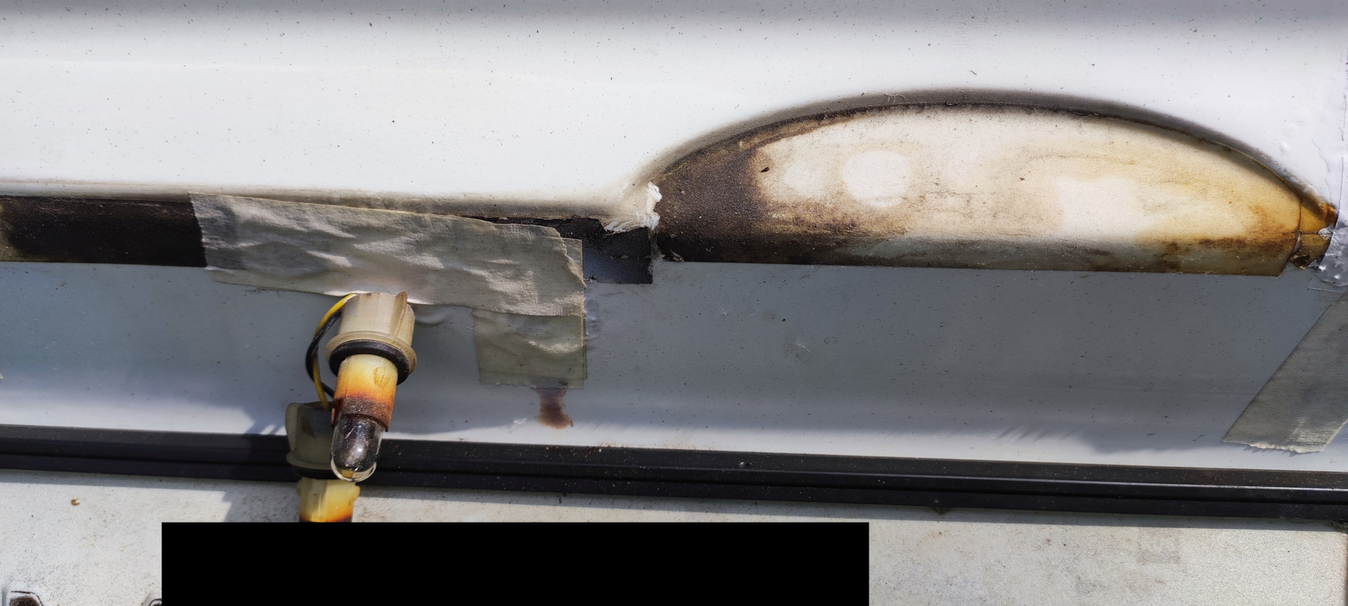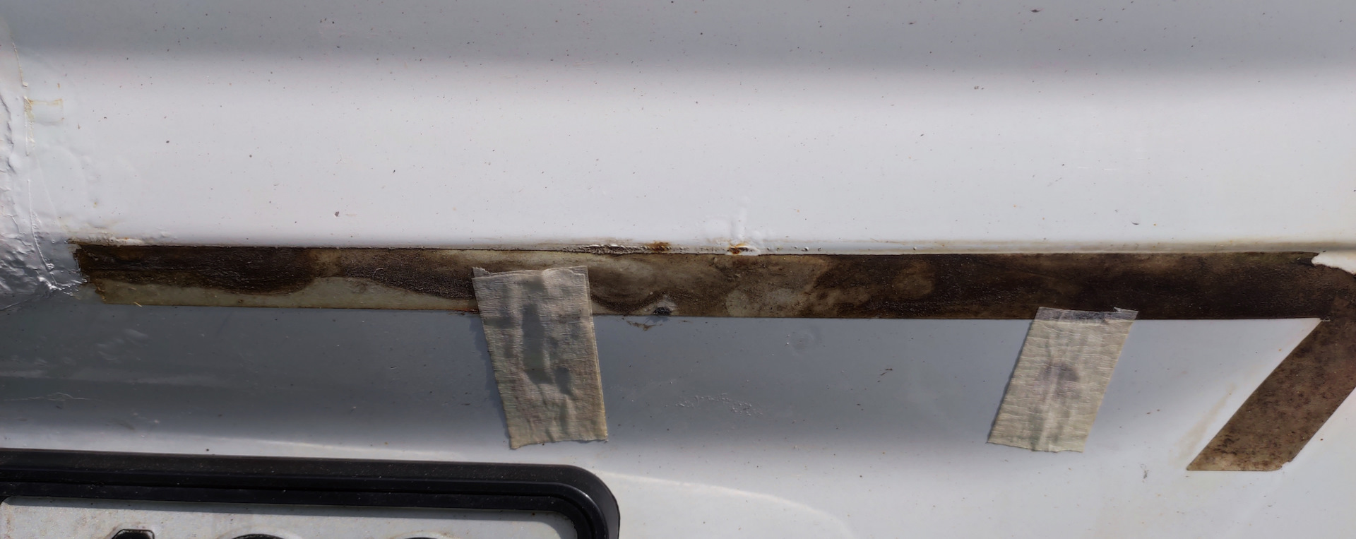 При более тщательном осмотре под вспучившейся краской обнаружилась не только ржавчина, но и, к сожалению, мягкое место, которое при не сильном надавливании отверткой промялось в маленькую дырочку. Просто, как временная мера, немного всё обработал, загрунтовал и замазал краской — так и ездил месяц, примерно, естественно понимая, что тянуть с этим дальше нельзя, пока не наступила осень с дождями, а затем зима и всё это не переросло в большую проблему.