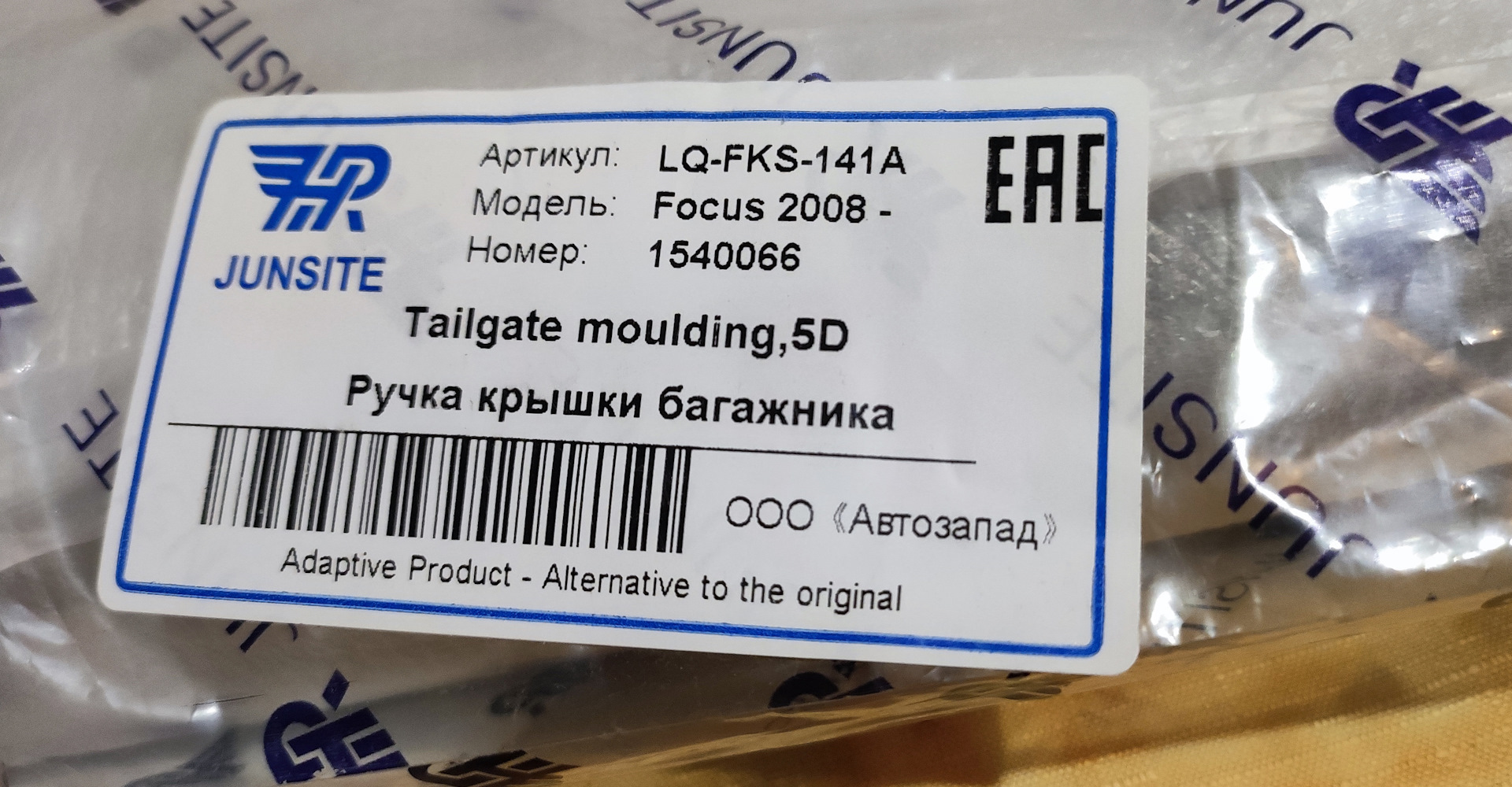 Саму накладку крышки багажника, как писал ранее, взял под покраску фирмы Junsite (LQ-FKS-141A) 1290 руб., т.к. с хромом больше не хотел связываться по нескольким причинам! Ставить снова неоригинальную хром накладку не хотел, т.к. этот хром начинает облезать с неё уже спустя год и она начинает царапаться и зеленеть, во-вторых, опять же, из-за того, что он снова будет неблагоприятно влиять на кузовщину, ну и, в-третьих — цена. Цена оригинальной хром накладки форд (1581833) стартует где-то от 25-30 тыс., а оригинал под покраску (1708809) — от 30 тыс рублей! За такой ценник мне это ни разу не нужно, тем более без разницы какой пластик красить: оригинальный или китайский — в данном случае всё будет одно и то же, пластик он и в Африке пластик!