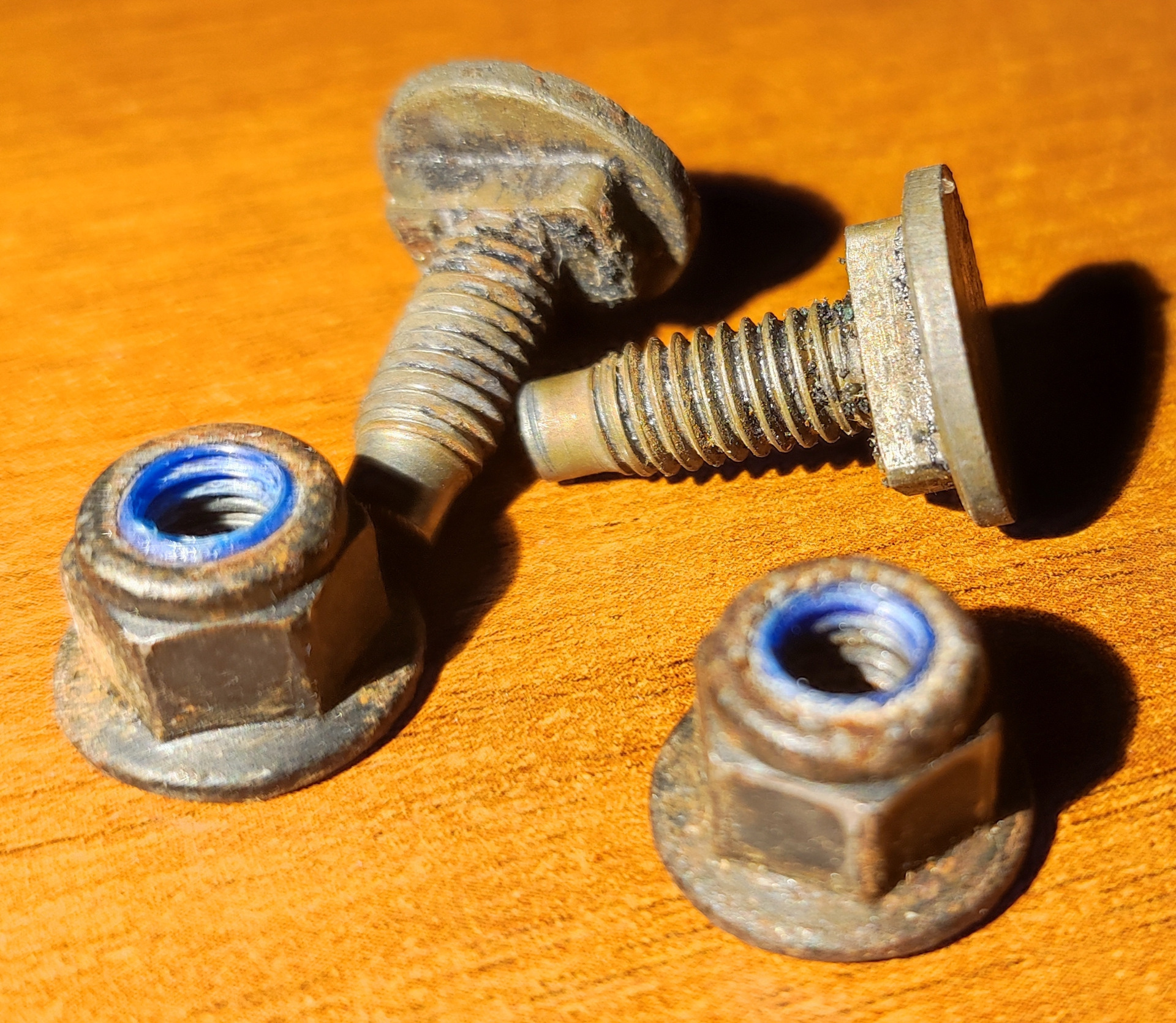 У себя хотел снять саблю для установки камеры, а 2 гайки из четырёх не захотели откручиваться от того, что все ржавые. Думаю дремелем срезать болты под корень, и поставить мебельные.