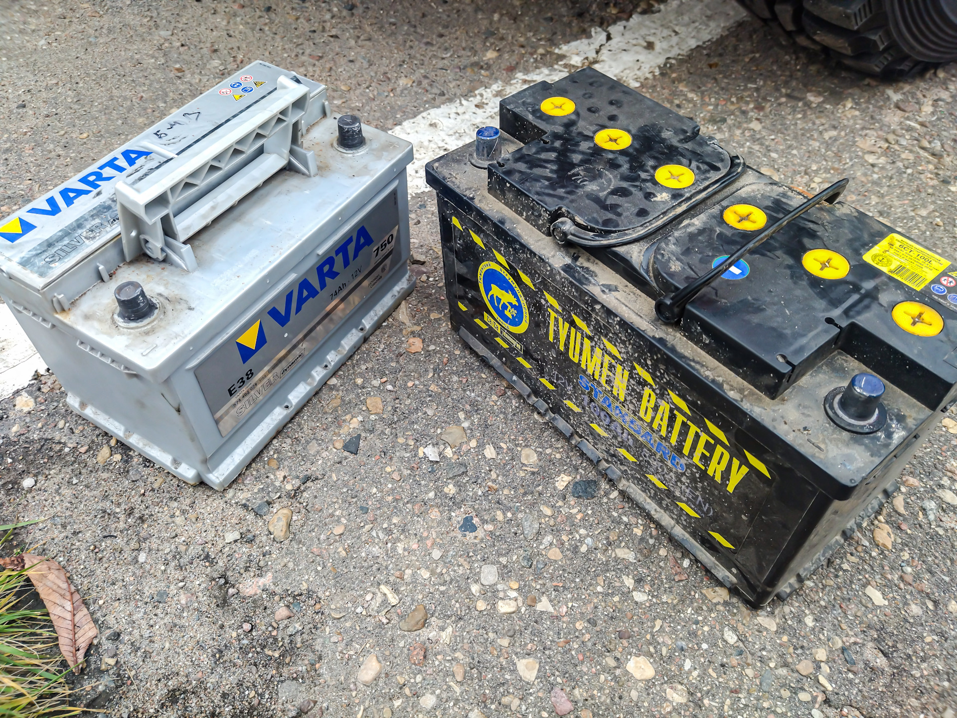 На следующий день начали делать полевой тест. Решил найти убитый аккумулятор, и обратился в наш местный фирменный магазин АКБ в Смоленске. У ребят попросил старый, самый убитый АКБ, который кто-то сдал взамен нового. Выбрали Varta silver на 74 А/ч. АКБ при этом сотрудники проверили своим цифровым тестером и убедившись, что батарея самая дохлая предоставили нам его на мучения на пол часика.