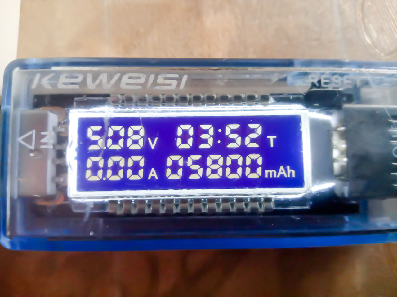 После вскрытия устройства, зарядили полностью, заодно проверив адаптер, который в комплекте. Адаптер честно выдает 3 Ампера при зарядке устройства.