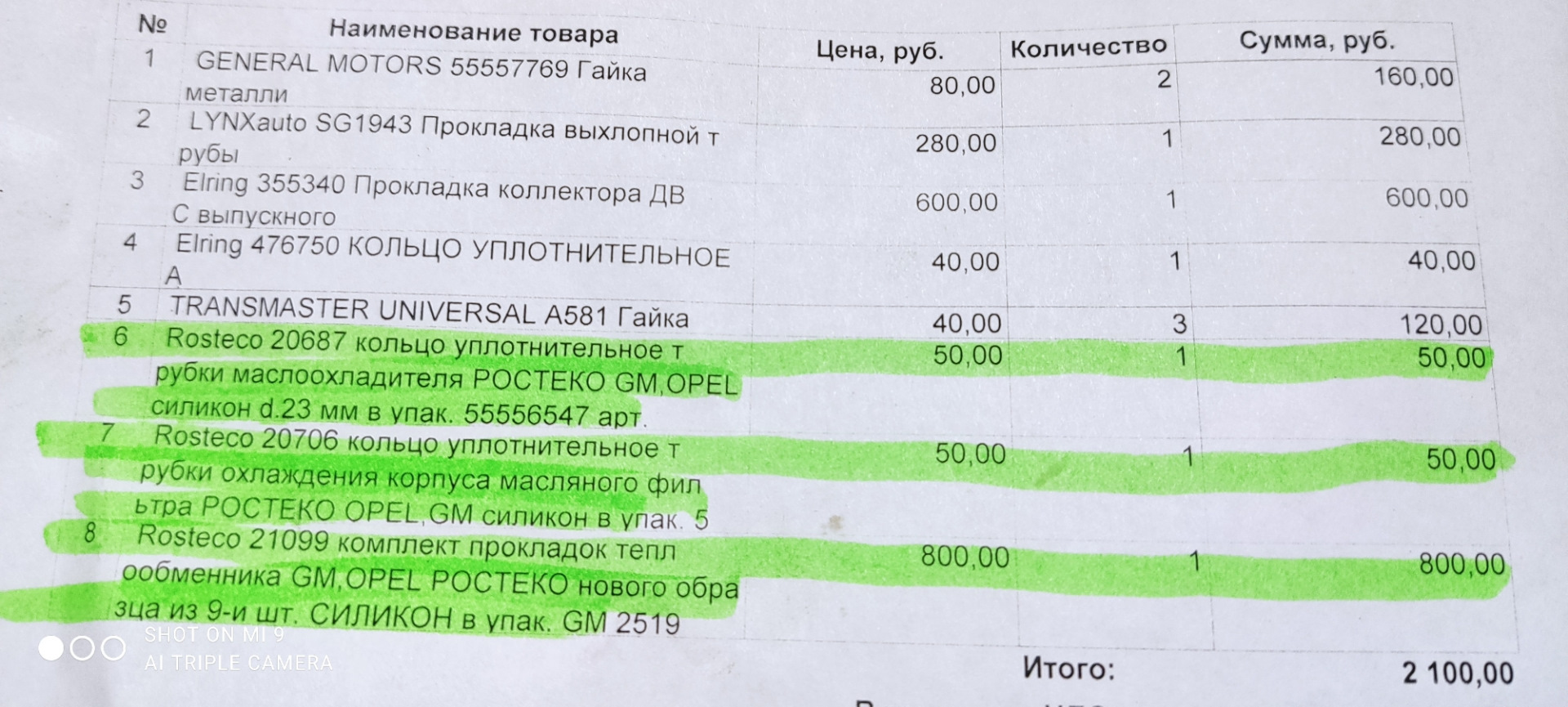 Чет не понял что за две лишних прокладки по 50 рублей. В комплекте же все 9 прокладок для ревизии теплообменника