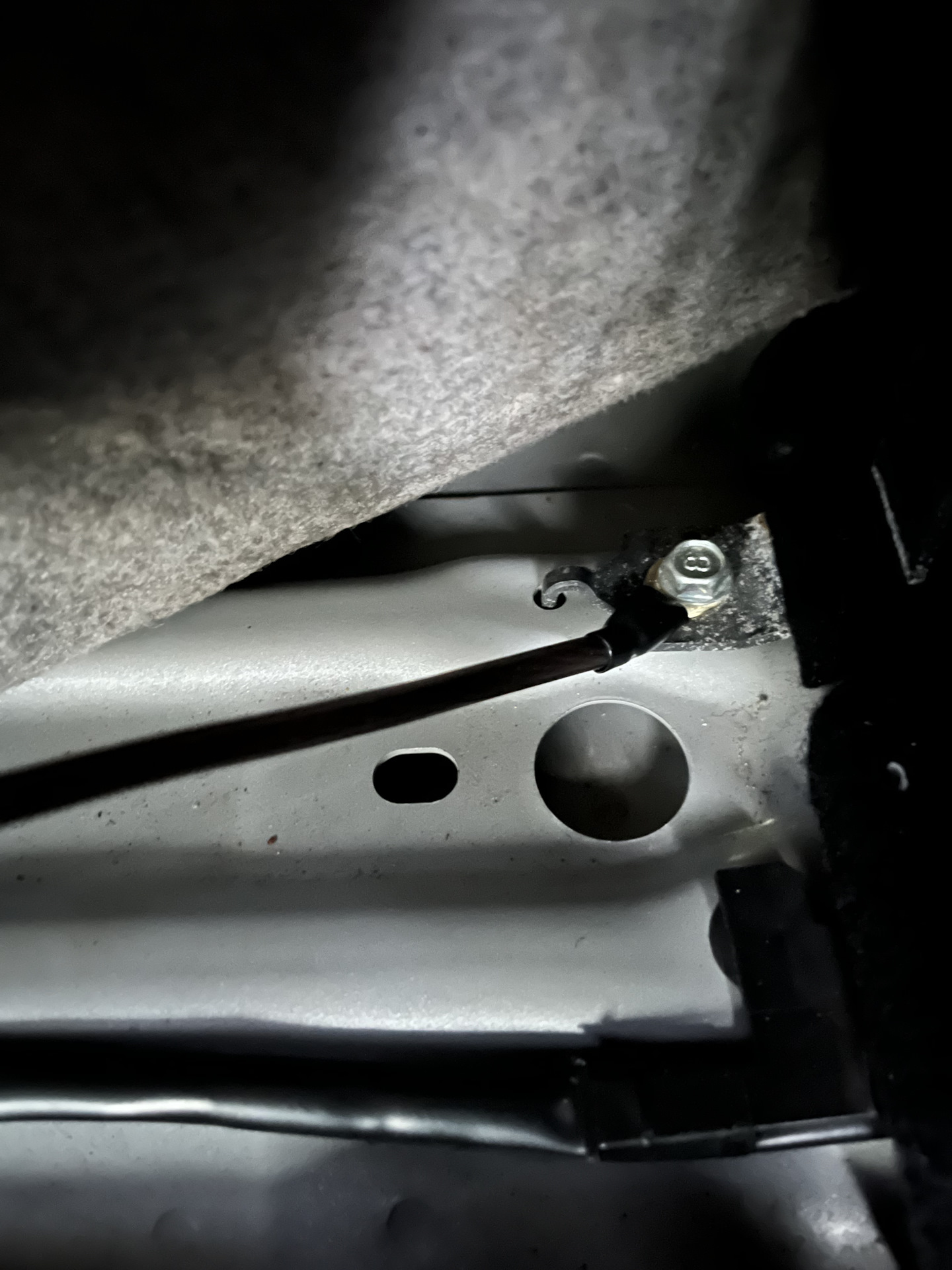 4️⃣ Провод на массу кинул на ближайший болт под ковром у левого крыла.
