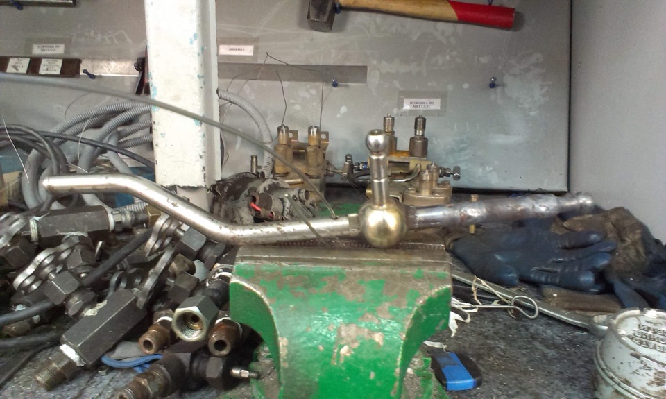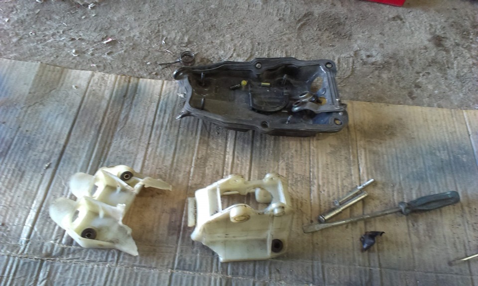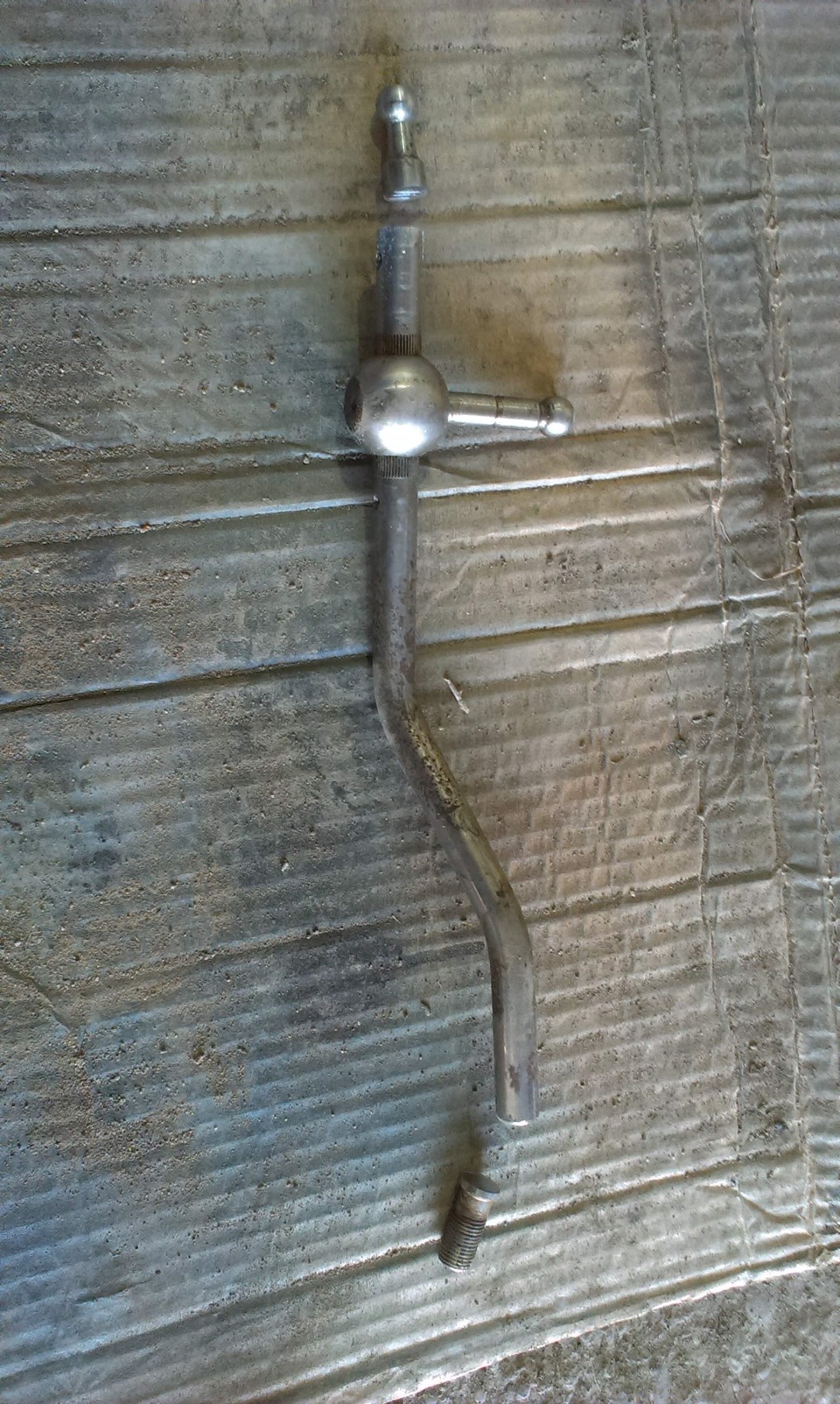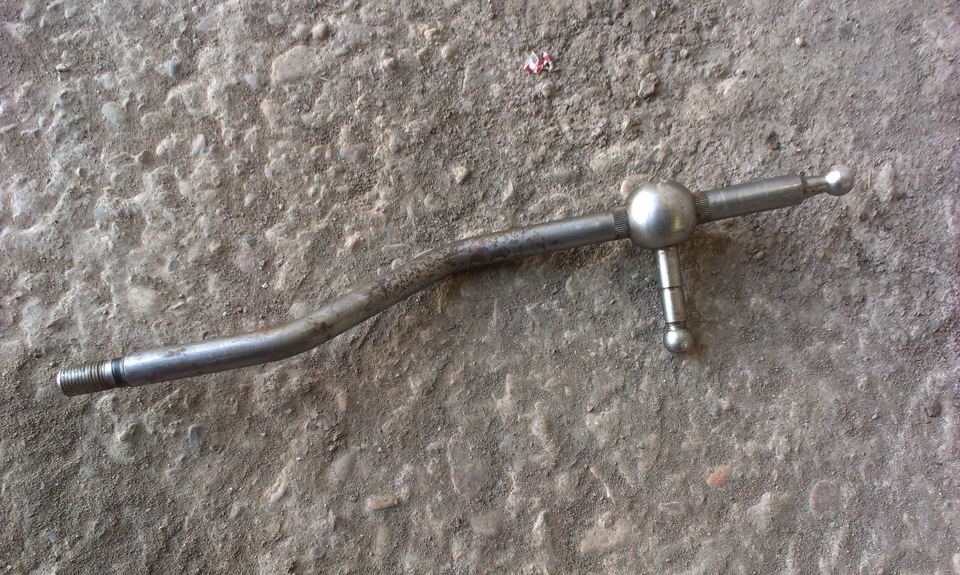 И ещё. На неделе начал делать короткоходную кулису. В гараже валялась с какой-то машины (предположительно с Карины Е). Разобрал её, отпилил сверху (25 мм). Отнёс на работу и наварил снизу 40 мм. Вчера снял свою, а она вообще другая (штырь, который смотрит вбок длиннее на 12 мм и шарик больше моего).