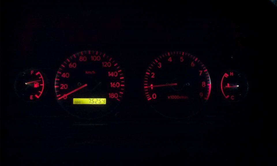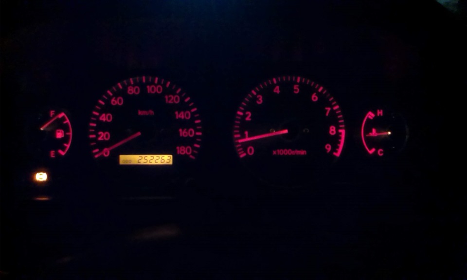 Сначала поставил на подсветку лампы накаливания, потом светодиоды. С диодами подсветка одометра красивее (белый светодиодный свет), но сама красная подсветка тусклее. Хочу обратно лампы накаливания поставить.