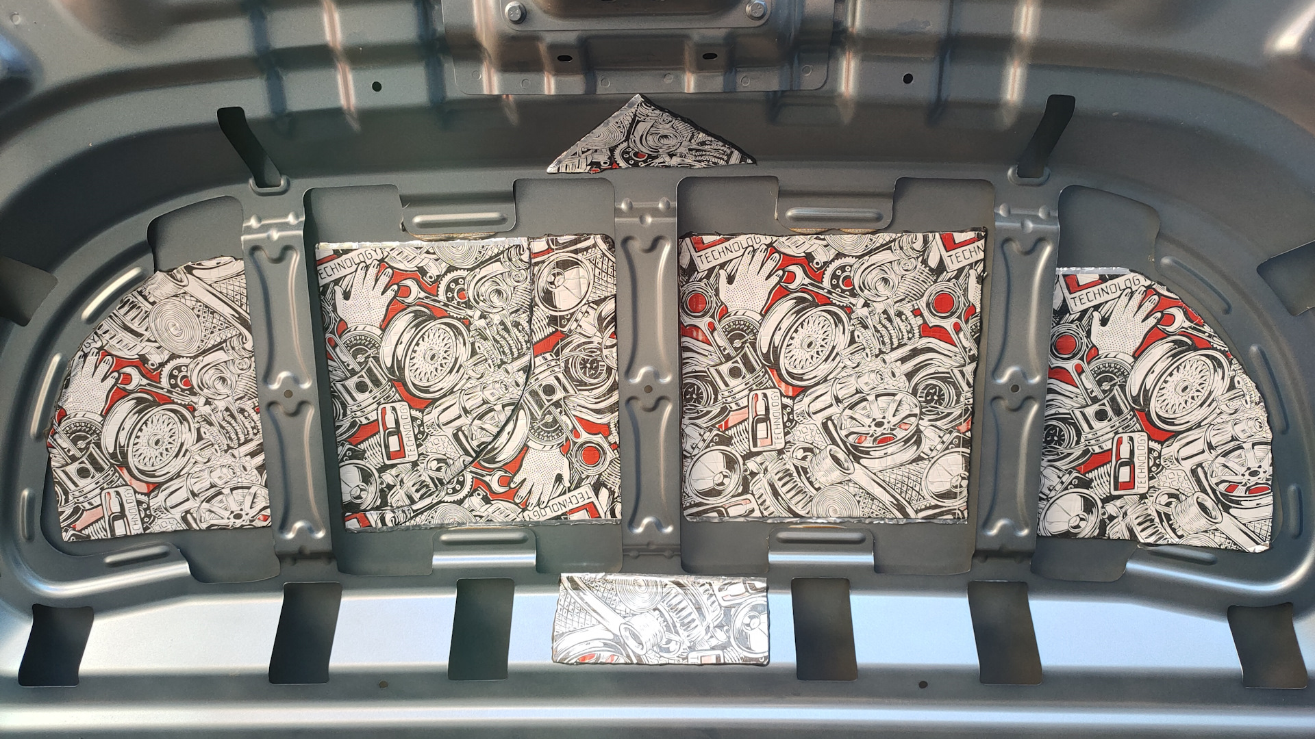 Сегодня решил ликвидировать еще один мелкий, но очевидный и досадный косяк. Сталкиваться с ним доводится кажен раз, когда захлопываешь капот. Сопровождается это действие веселым звоном всей крышки капота, иногда даже есть ощущение, что резонируют стекла в окружающих домах. Чего стоило налепить туда пару квадратов виброизола, как это сделано в нише запаски? Ну, поленился производитель — не поленимся мы. Наша задача — устранить "звон" капота при закрытии, не более. Родной уплотнитель, совмещающий функции шумоизоляции и утеплителя, достаточно толстый, смысла городить что-то еще к нему не вижу.