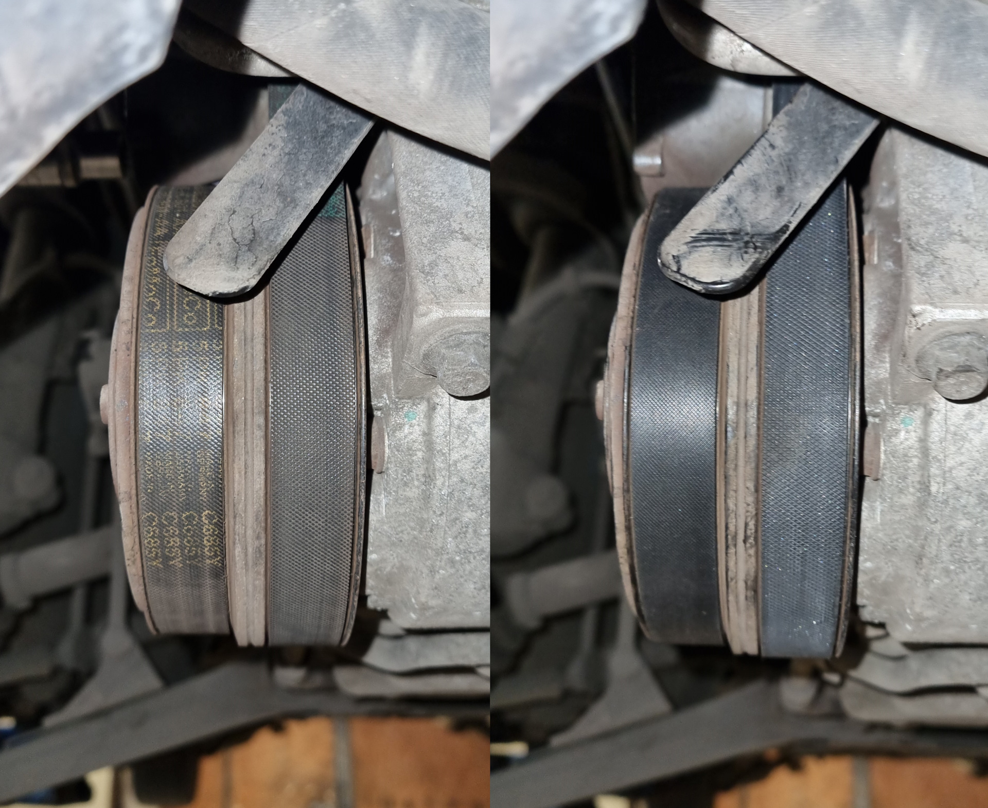 При хорошем освещении, даже, оказалась видна маркировка: заводской ремень генератора на 1 миллиметр длиннее, чем Contitech, который приобрёл я. Выглядит так, что ремни как раз тысяч 30-40 и пробежали.