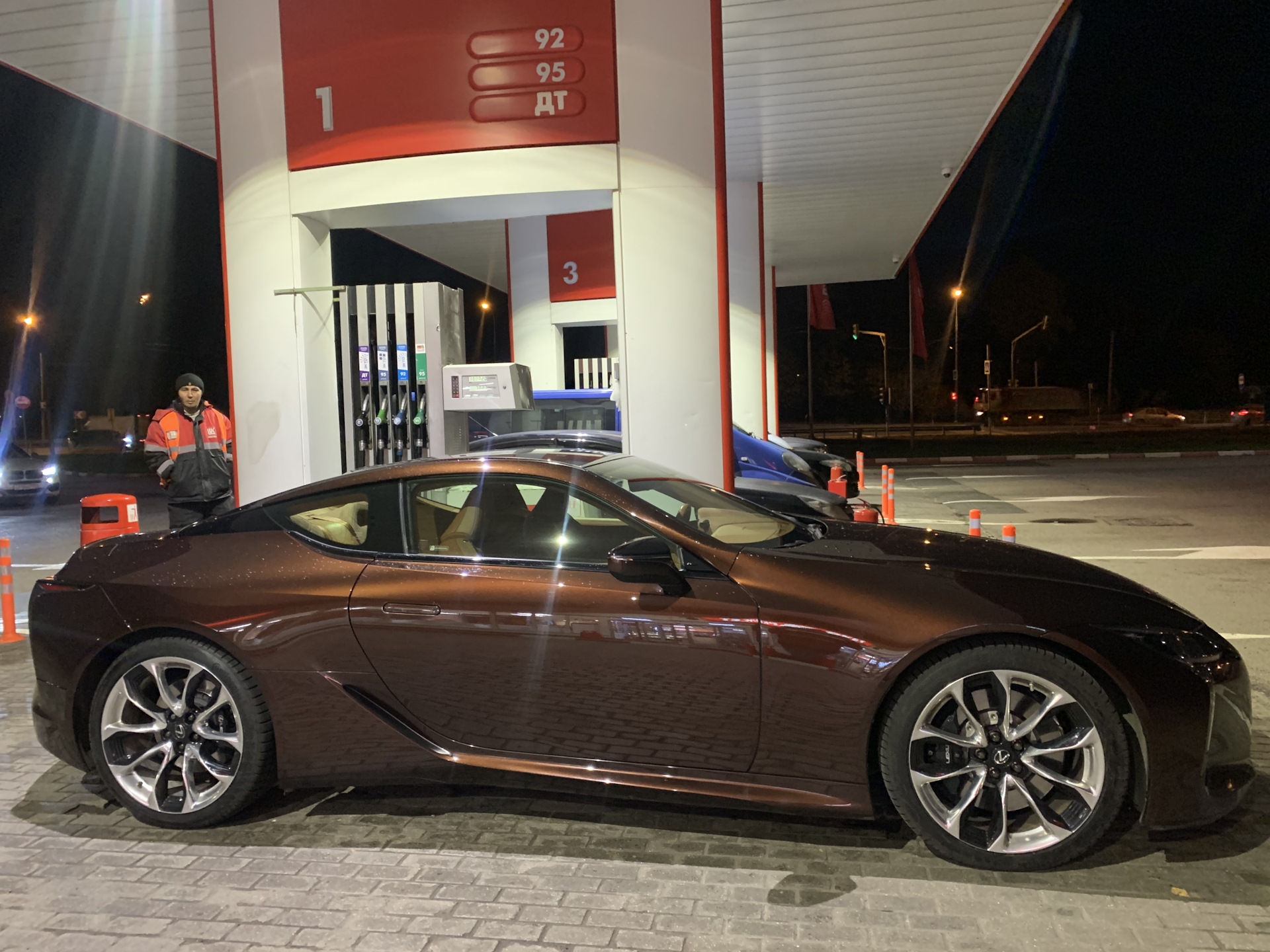 По пути собрал часть пробок и залил на Лукойле 70 литров топлива чтобы совсем мой LC500 был рад)