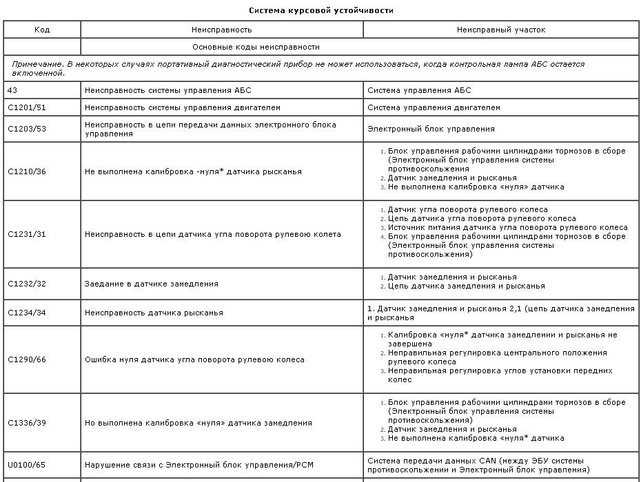 Доброго всем времени, привожу таблицу всех возможных кодов ошибок, какая неисправность и соответствующий неисправный участок. Сохраню для себя и для моих читателей.