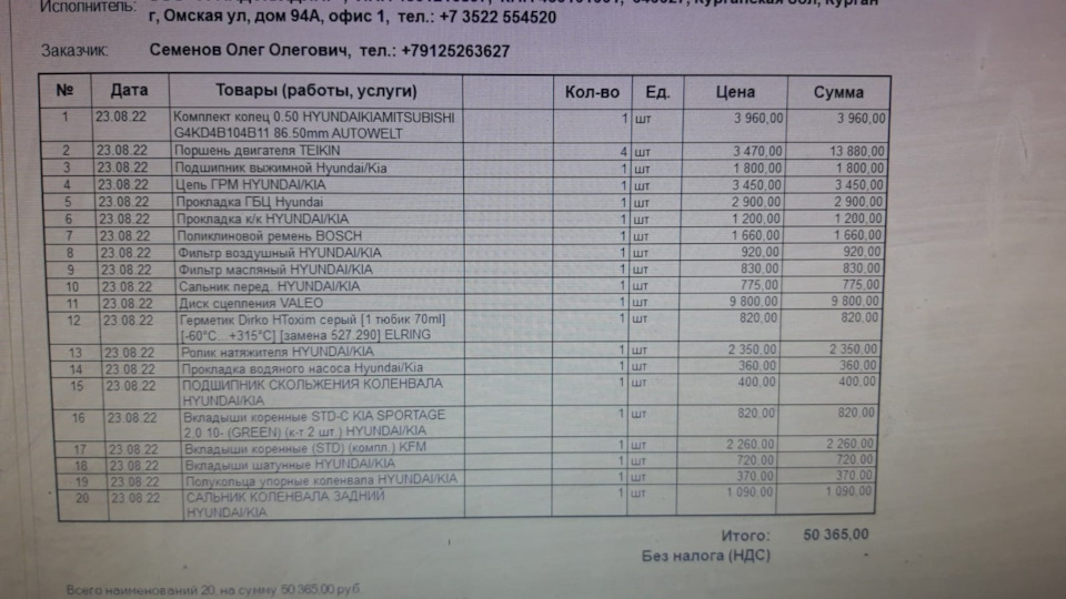 4.Остальное приложу фото с заказ наряда на запчасти с ценником.