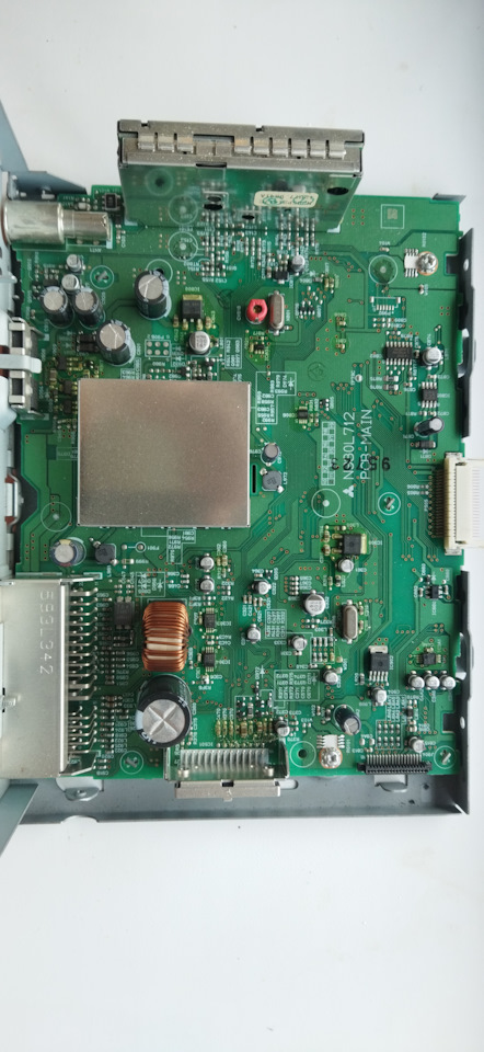 Итак, нужно полностью разобрать ГУ и найти место, куда впаять наш BT приемник. Это можно сделать, проследив звуковую цепь от тыловых выходов ГУ. Маркировка выходной микросхемы закрыта теплоотводом. Чтоб его не выпаивать, беру даташит от чипа на 27 выводов, например TDA7562 — распиновка совпадает. Впаиваюсь сюда: