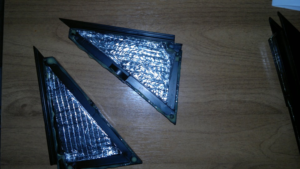 Зеркала, как это сейчас принято не стал менять на лопухи(Политех). Оставил родные 011, а вместо стекол купил заглушки. Эти заглушки состоят каждая из 2х частей(половинки), поэтому изнутри проклеил их шумкой для самоуспокоения))