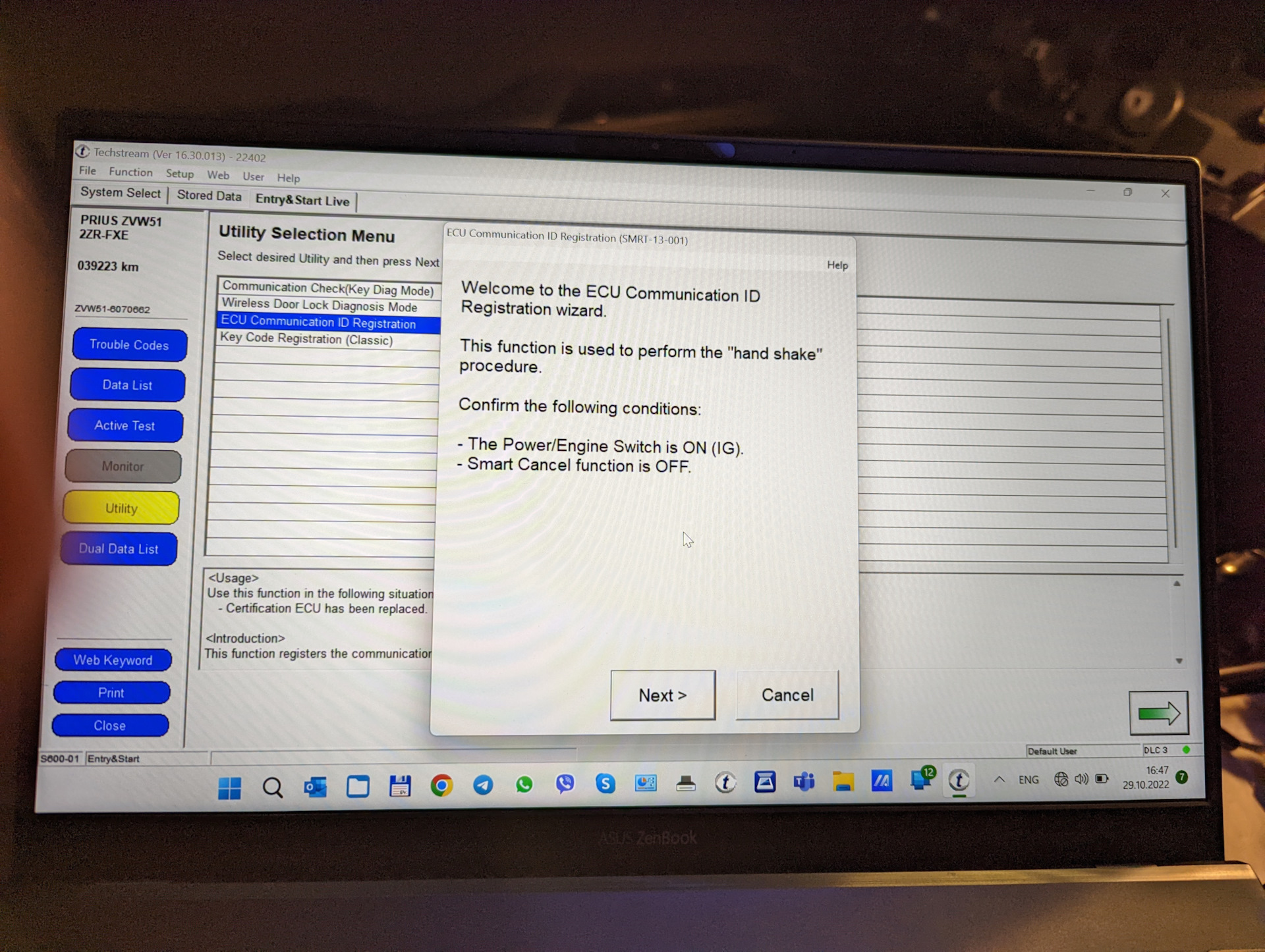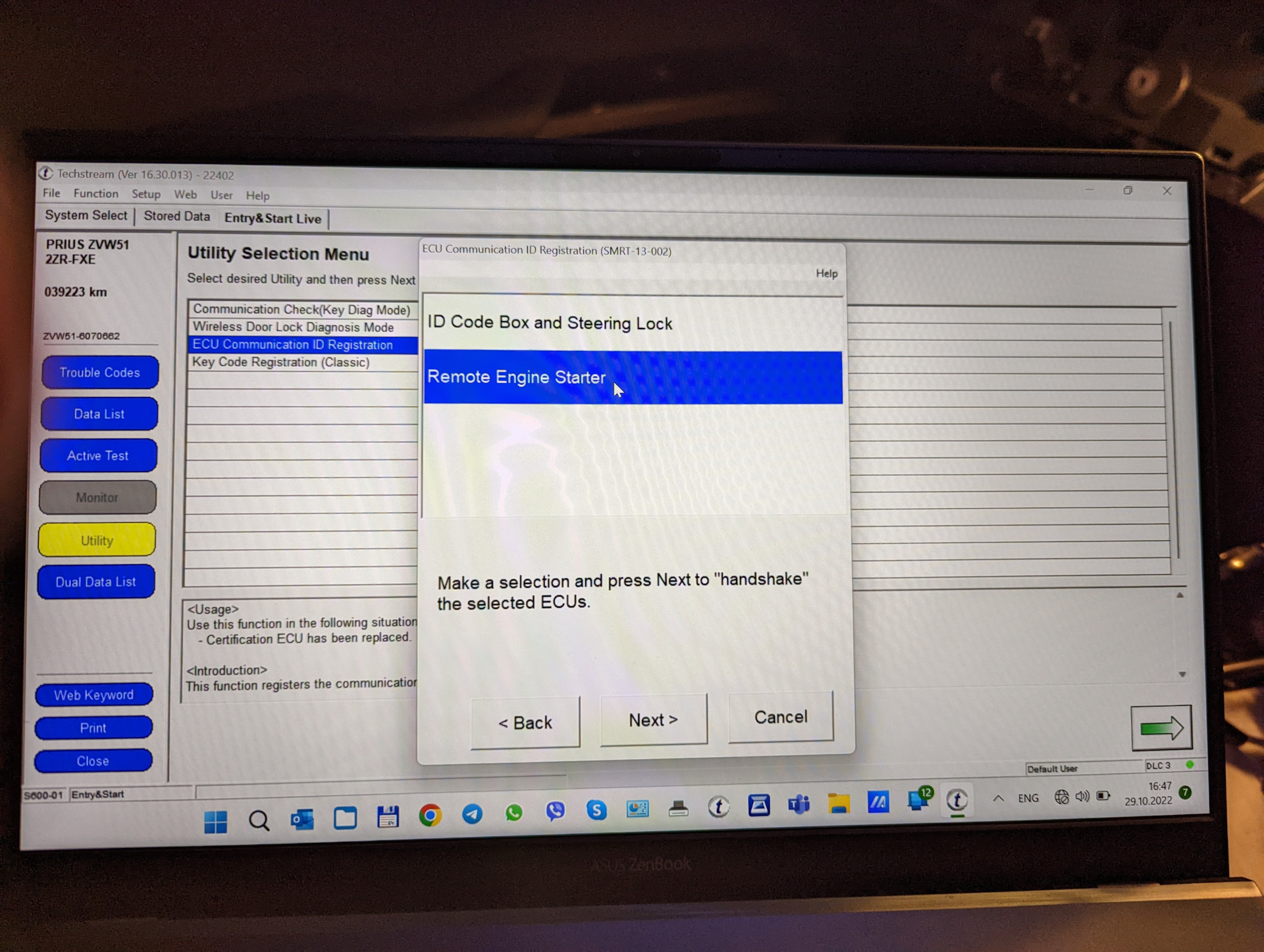 Далее нужно запустить программу Techstream и прописать новый блок в машину.