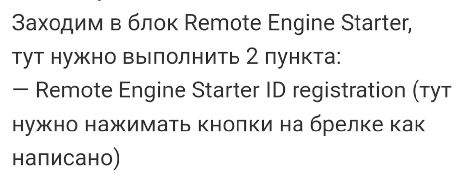 — Remote Engine Starter ID registration (тут нужно нажимать кнопки на брелке как написано)