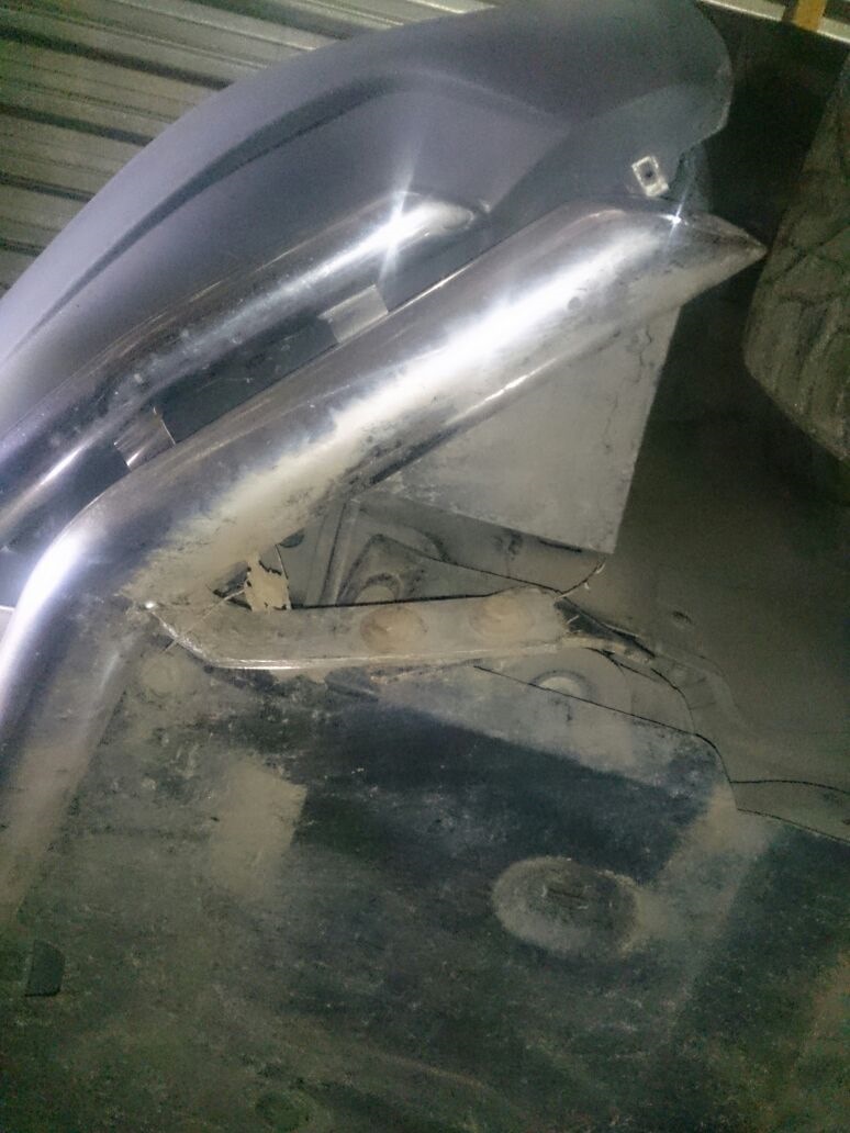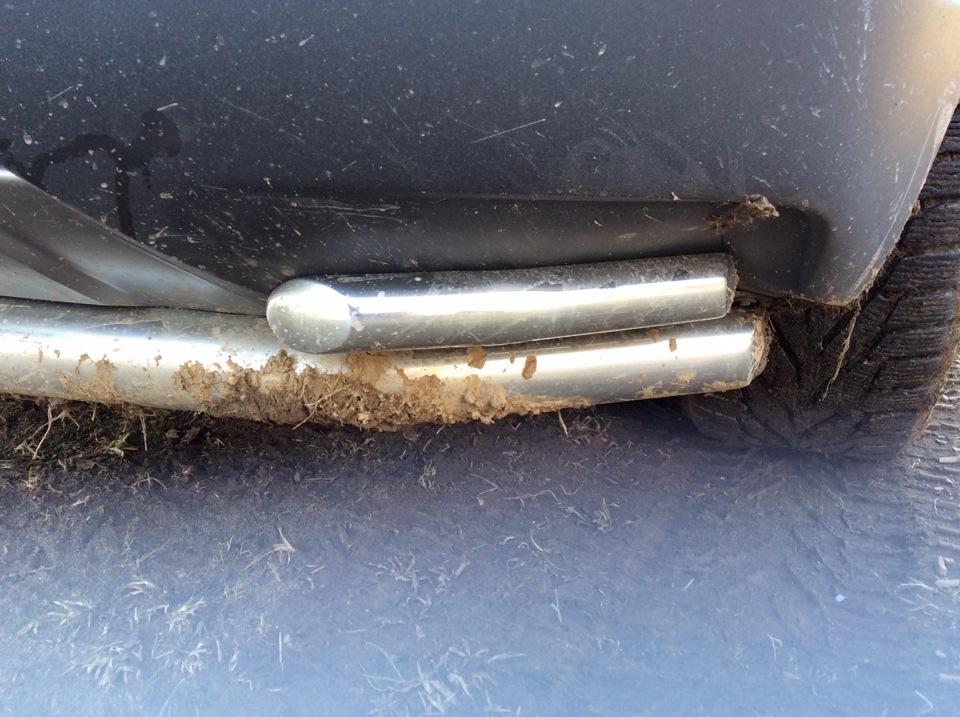 Пока катались по берегам случилась маленькая неприятность. Дорожки там местами не плохо размыло, ухабы довольно сильные. И вот поднимаясь по каше с ухабами в довольно сильную горку (на довольно нормальном ходу что бы не встать) в конце подъёма клюнул в большую яму в которой по видимому ещё и камень не маленький был. Удар довольно сильный… Осмотрел только когда вернулись.