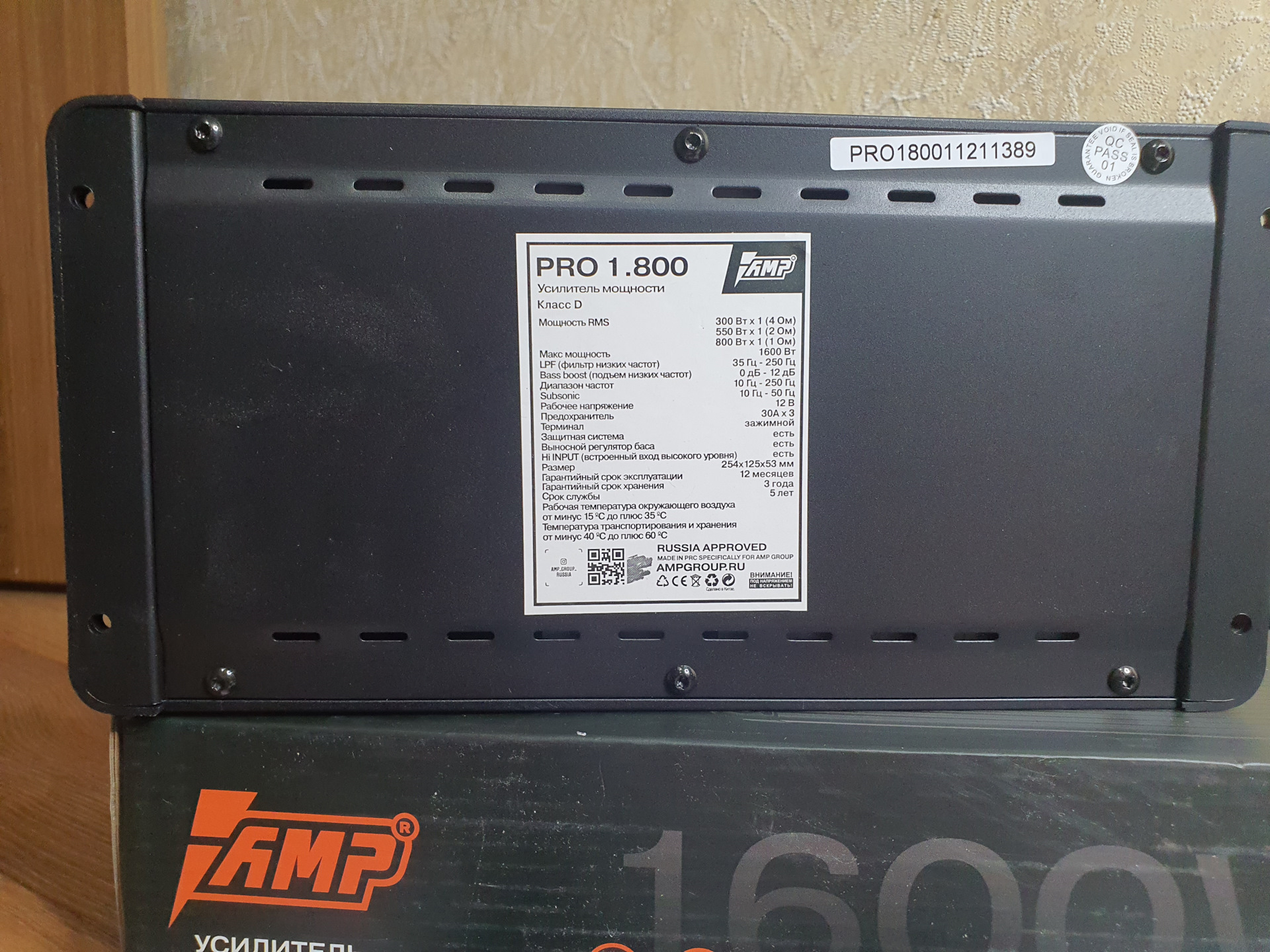 У AMP PRO 1.800 следующие характеристики: