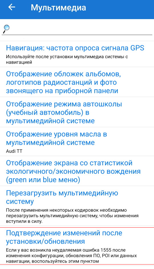После обновления не забываем скинуть ошибку 1555, которая регистрируется при обновлении в магнитоле, это быстро можно сделать через Carscanner: