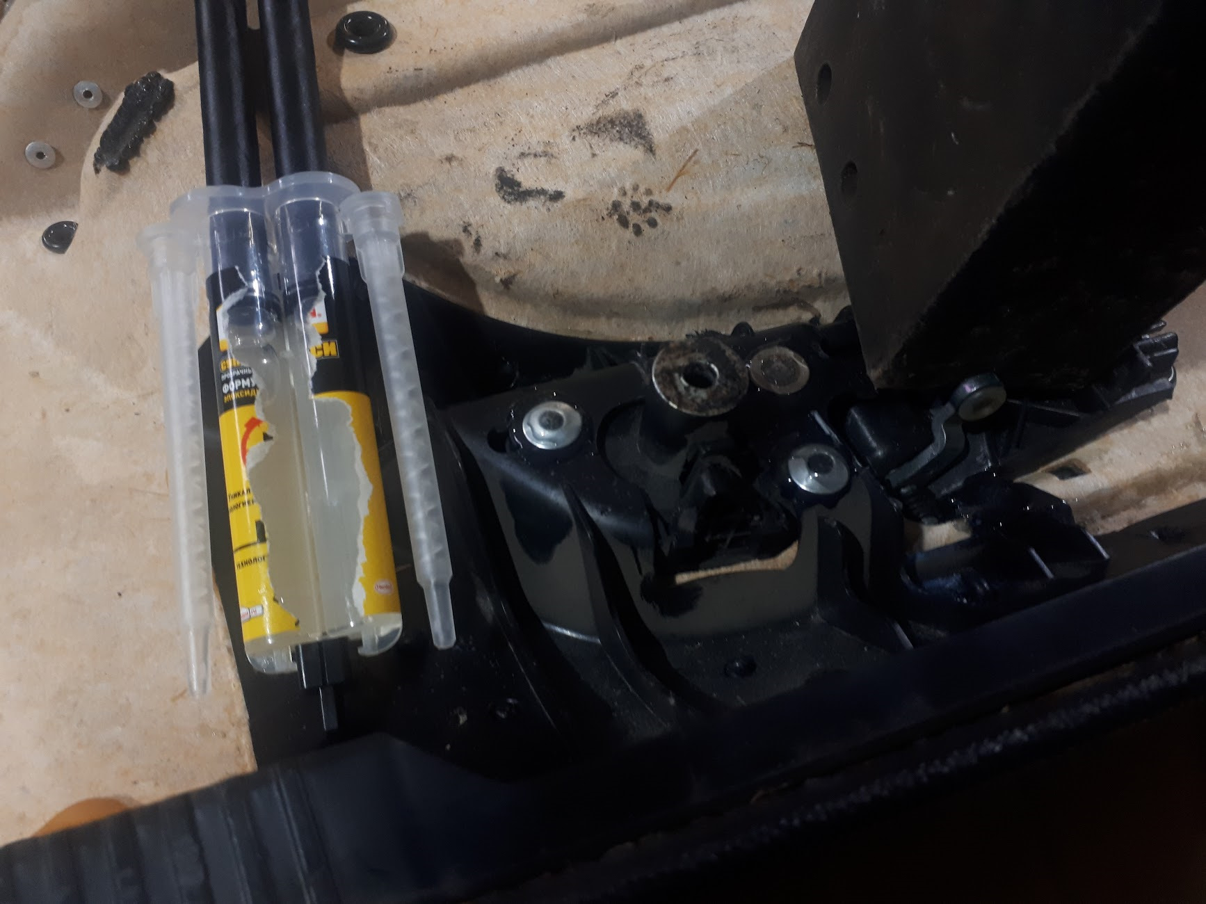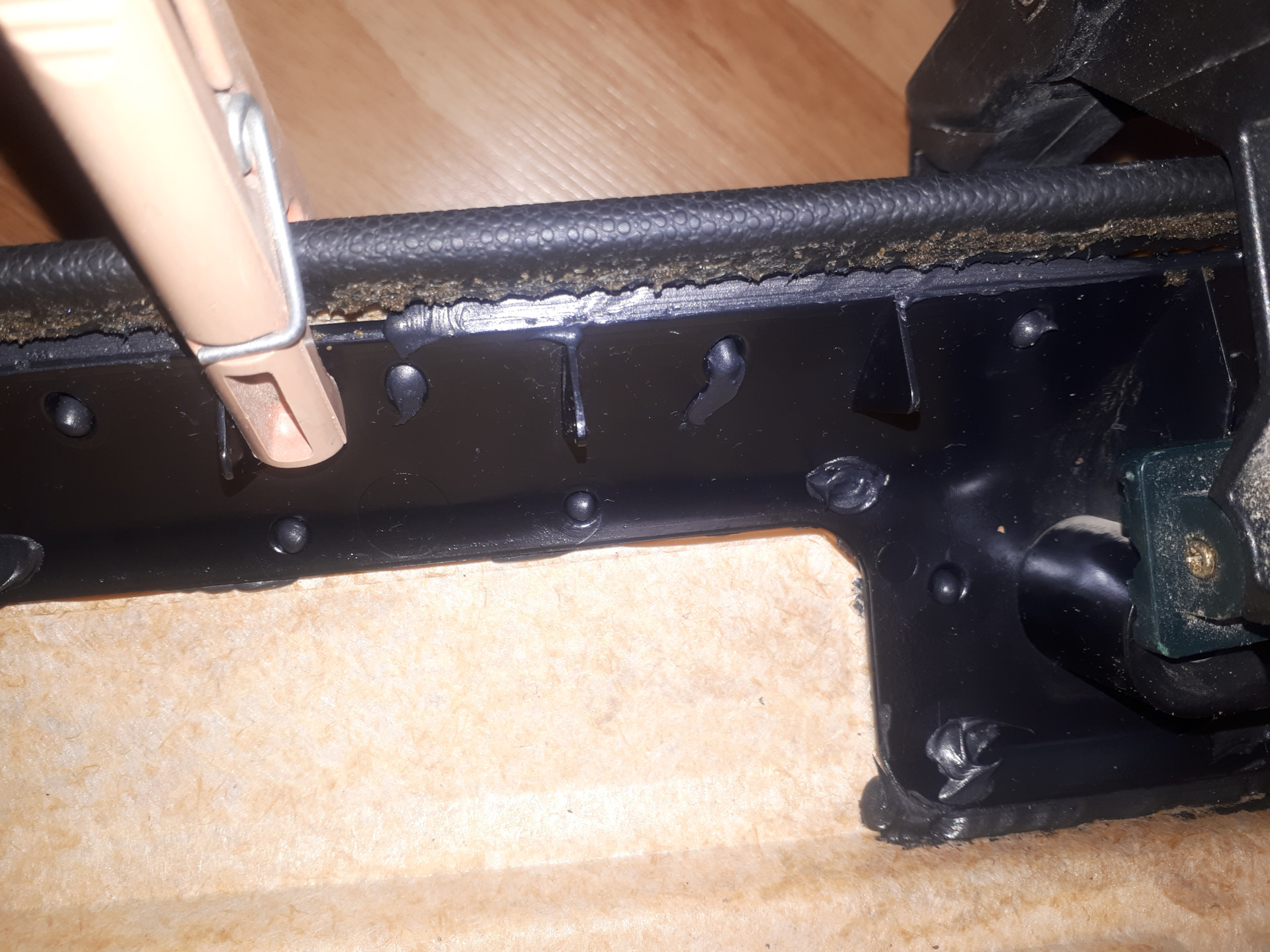 Чтобы снять эту верхнюю планку карты нужно было высверлить пайку, которая держит корпус внутренней ручки! вот такая я ее приклеил обратно, положил шайбы и залил эпоксидкой!