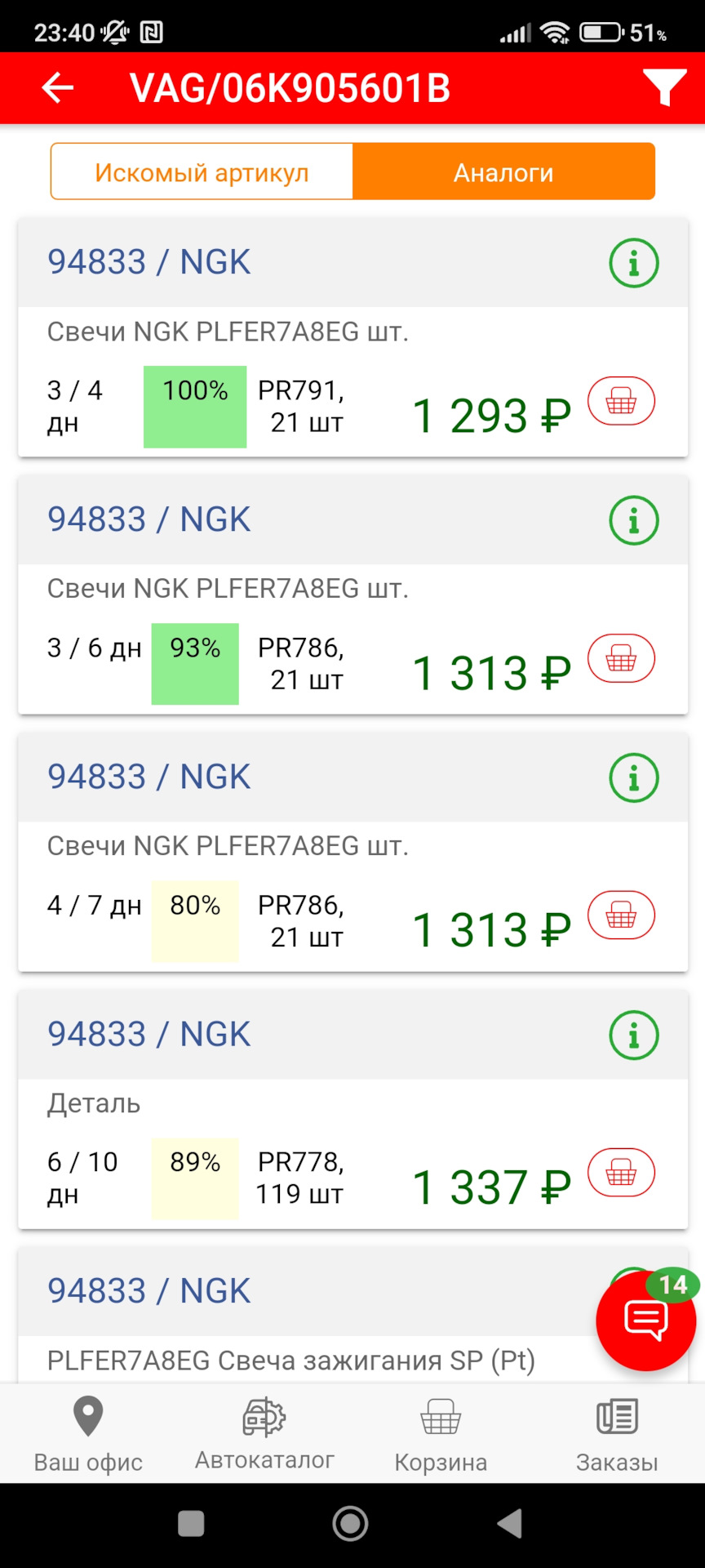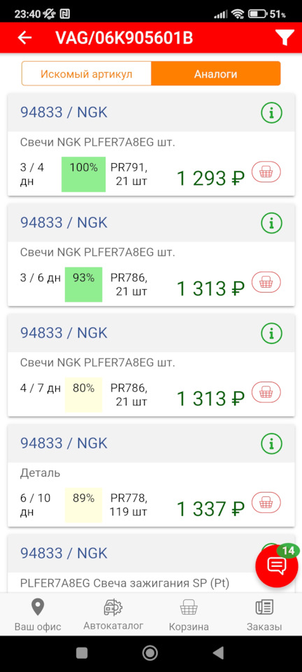 Пользуясь случаем, хочу предложить свечи NGK 95463 на 1,4 150 сильный мотор. Заказал их так же у Паши, но только потом заметил что они на 150 сильный мотор, а у меня 140. Заказал ещё один комплект, но Пашу подставлять своим не правильным выбором не стал, сказал что сам продам их тут без наценки. Т.ч. если кому нужны данные свечи, пишите в ЛС, отдам по себесу (1300 за шт, итого 5200). Ориентировочно приедут на след.неделе +/-, сейчас человек отдыхает от наших заказов))