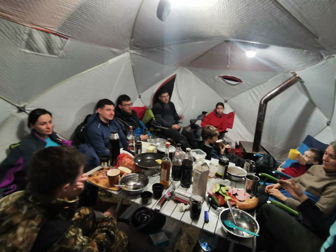 Планировали посидеть у костра, но какой там костёр, когда есть такая шикарная палатка)
