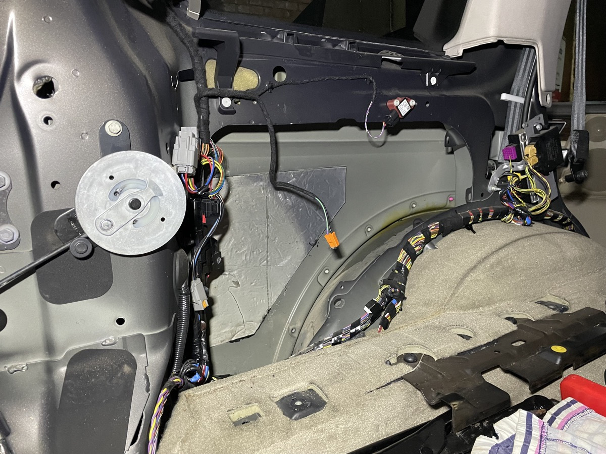 Для ускорения процесса и целостности салона, самостоятельно снял обшивку левого заднего крыла.