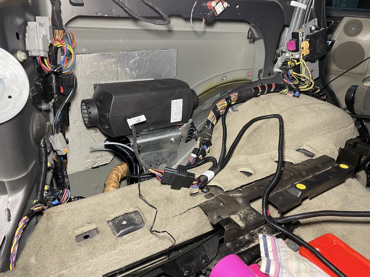 Ничего не утеплял и не закрывал, наоборот ещё передние приоткрыл, чтобы щели были 3-5мм, для воздухообмена) градусов 15 может было, но я на минимальной мощности можно сказать гонял его, как то до этого на минимум мощности ставил, было жарко слишком, потом перешёл на работу по температуре) 2 кВт вполне достаточно чтобы спать думаю до — 30 без всяких утеплений) жрёт мало солярки, аккумуляторы тоже вроде не особо, но у меня 2шт) установщики то быстро поставят, потому что знают как протянуть лучше, как подключить, как закрепить, а я хоть и с руками прямыми, но опыта такого не было, поэтому так долго возился, тем более уже ноябрь был и делал у себя во дворе прямо) доделывал уже с включённым феном)