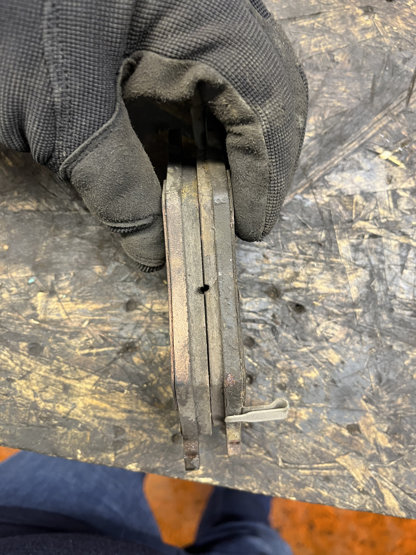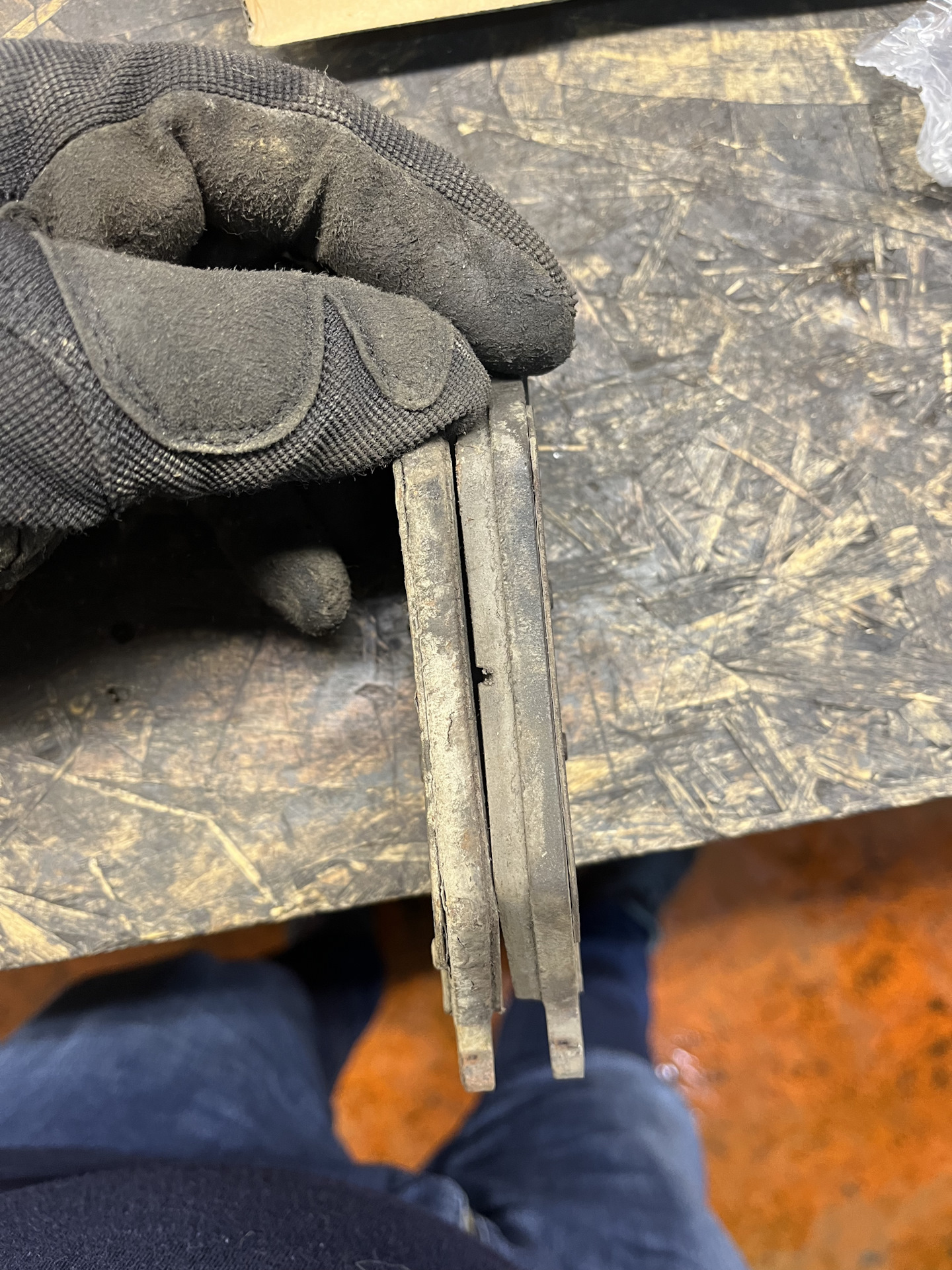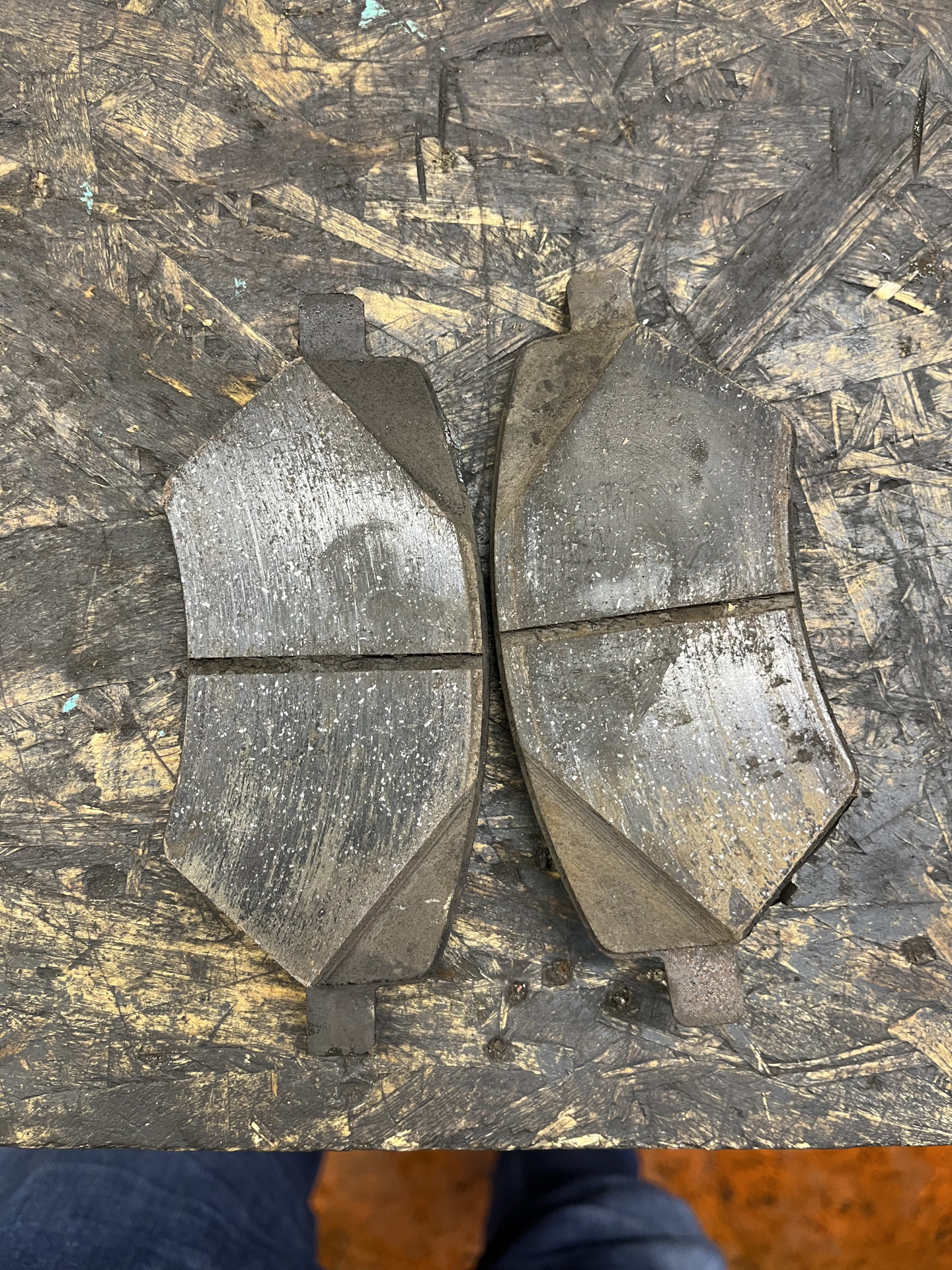 Первым делом подняли на подъемник, скинули два передних колеса и сняли два суппорта. По результатам снятия колодок картина была следующей:
