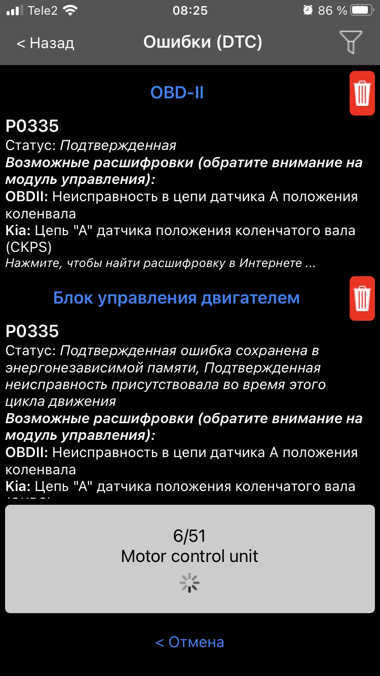 Вот и меня настигла эта участь, тоже связывал с плохим топливом после заправки ⛽ стала машина плохо заводится и завышать обороты на холостых 1100-1200 об. Пробег 162000 км Кия Церато 2 около месяца ошибка не выскакивала не мог понять что это, сейчас ошибка выскочила Р0335 теперь понятно, буду заказывать датчик менять, потом отпишусь