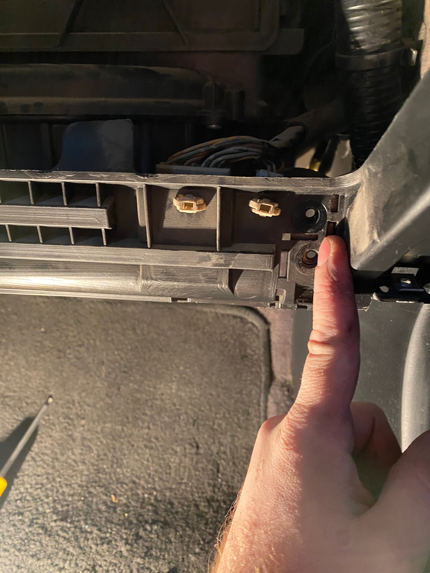 Можно так обойтись, очень много записей есть как моторчик половинят и вытаскивают. У кого день или два выходит. А так даже по инструкции можно пилить. На этой планке нечего не держится, только 3 фишки и все. Сними бардачок и увидишь) так что смело пили.