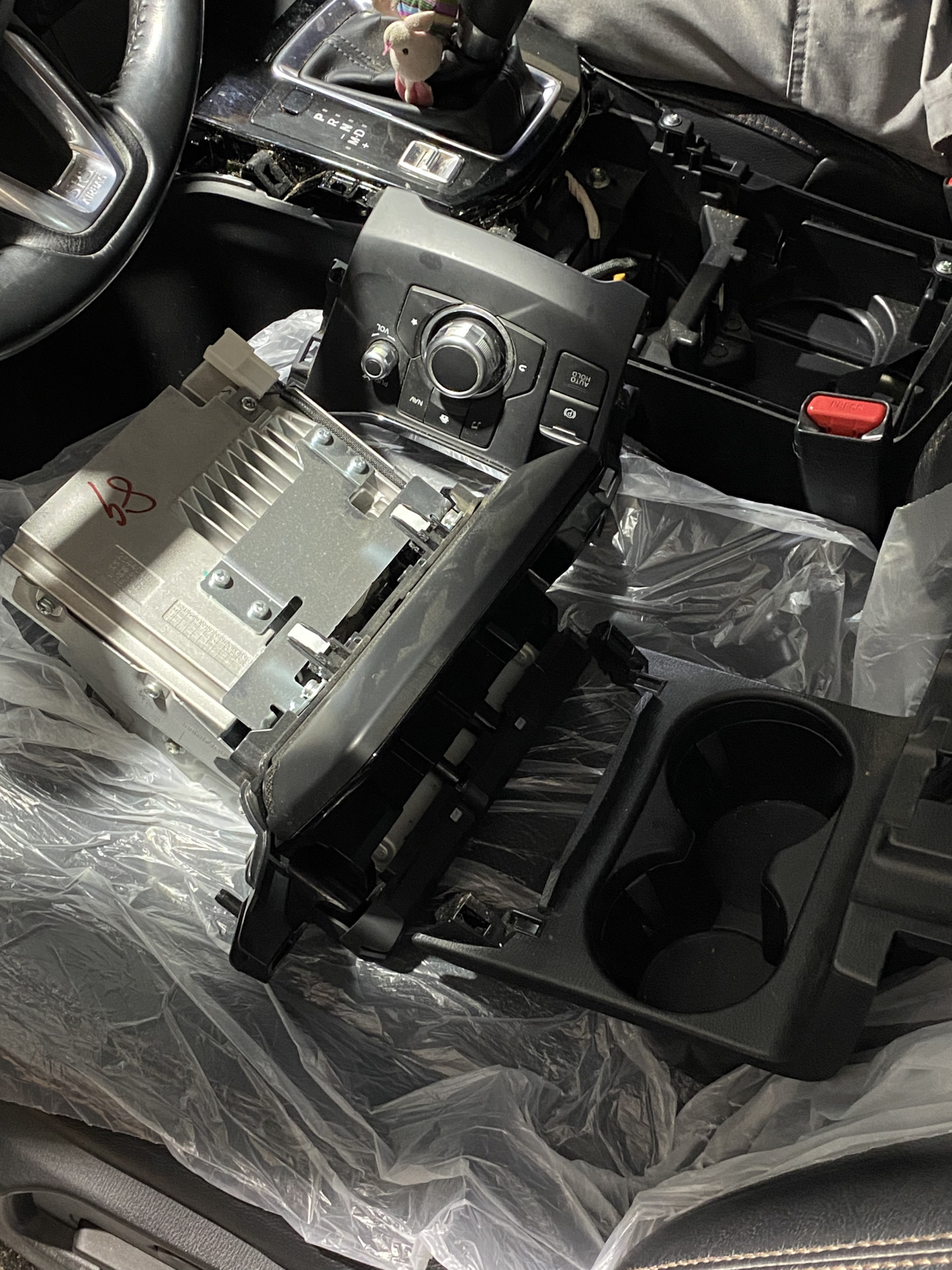 Карплей установлен. Скажу честно — сам ставить не стал, в гараже уже холодно а пластик дело такое. Ребята взяли 3500 за обновление головы и установку блока нового.