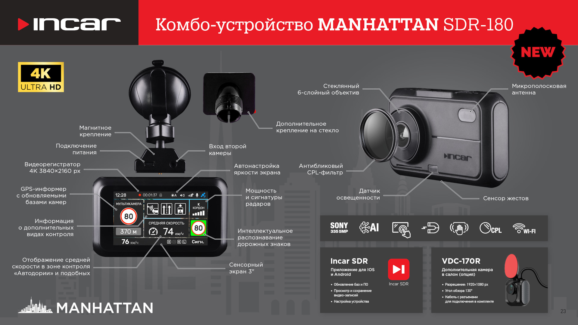 Итак, что за чудо? — инновационное двухкамерное сигнатурное комбо-устройство 3 в 1 INCAR SDR-180 Manhattan