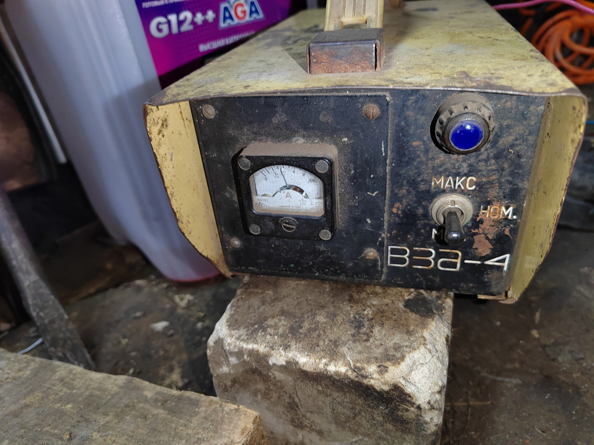 Так же, так как впереди начинаются не хилые морозы, решил немного подзарядить АКБ, хоть и он и новый, но лишний раз подзарядить его не помешает, да и еще предыдущим днем, я все с музыкой сидел игрался на заглушенном двигателе. Померил заряд до зарядки, вот таким вольтметром. Ну и заряжал где то часа 2 на максимальном токе, стареньким зарядником, который выполняет свою функцию уже очень много лет, мне кажется он появился у отца когда даже меня еще не было🤭