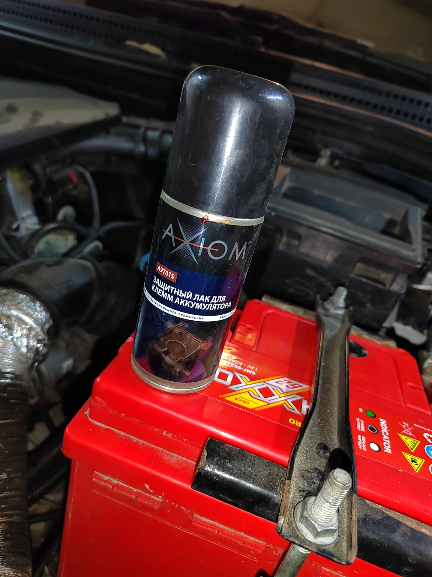 Ну и в завершении, после установки АКБ на место, защитил клеммы специальным защитным лаком. ⬇️⬇️⬇️
