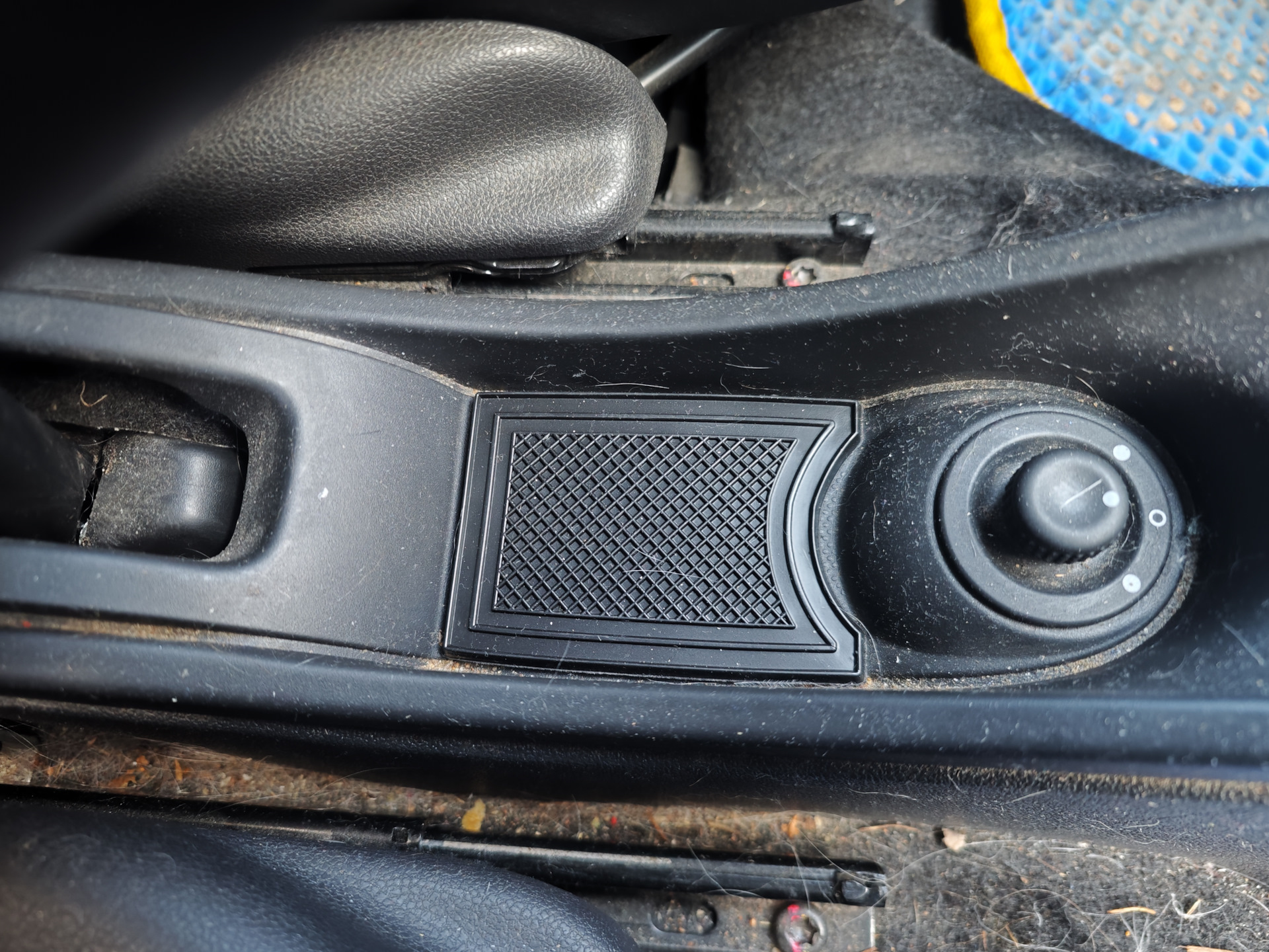 Коврик просто лежит (его всегда можно поднять), за счёт точной подгонки все думают что заводское решение :)