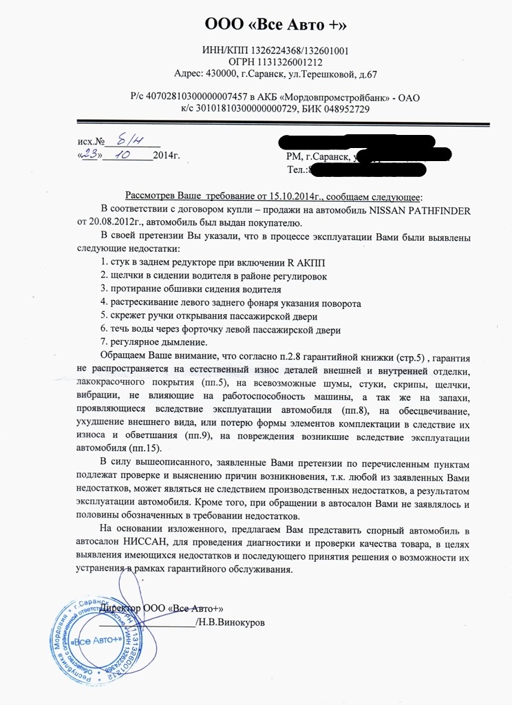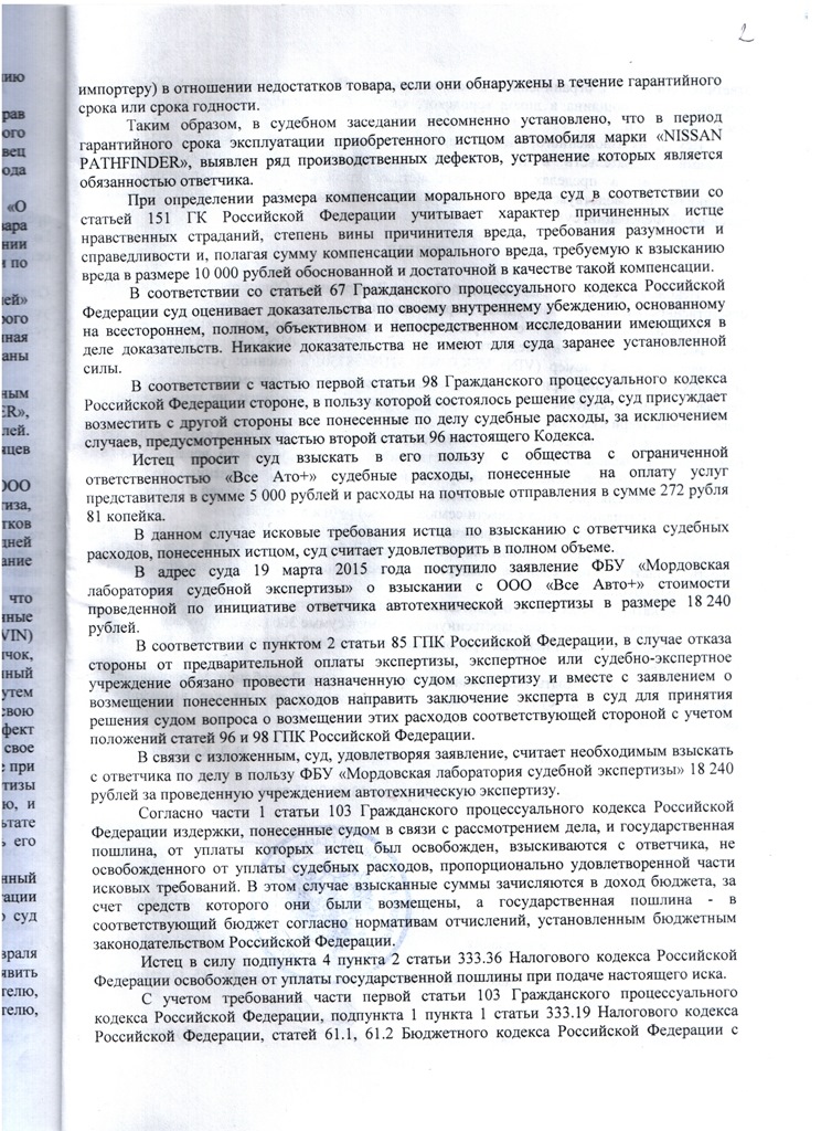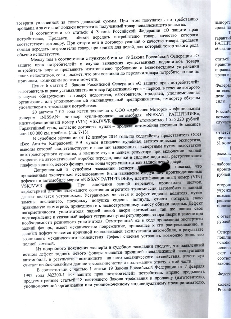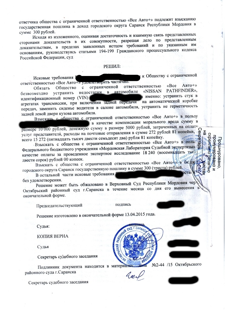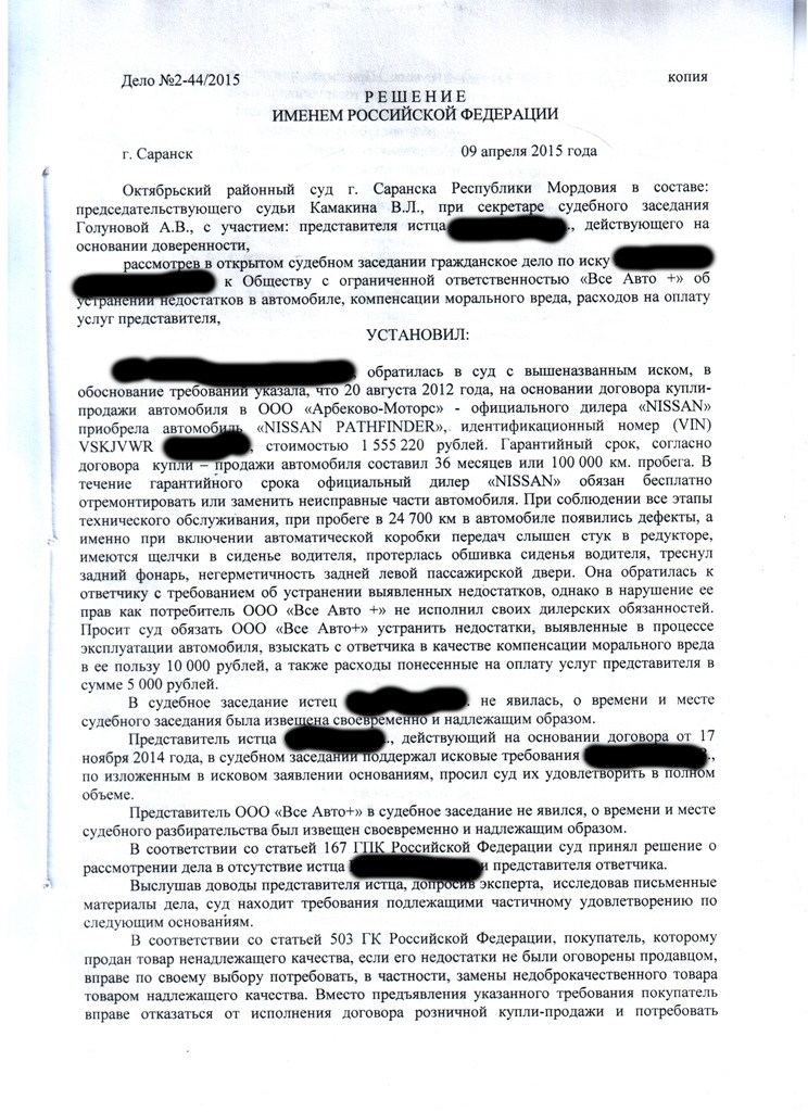 В общем сегодня получил на руки решение суда! А начиналось всё с обращения к ОД Ниссан "Все авто+" в Саранске. Вот с такими недостатками.