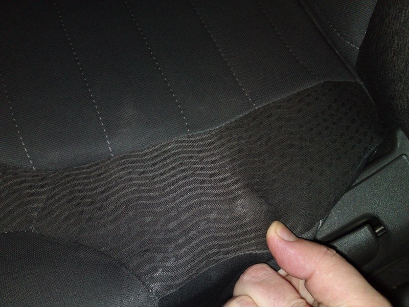 Автомобиль был представлен в сервисный центр, поверхностный осмотр и вердикт: "Отказ в гарантийном ремонте" Далее я потребовал проведение экспертизы, ответ: "Проведение экспертизы мы считаем нецелесообразным" У меня даже запись телефонного разговора имеется.) Когда осматривали автомобиль на подъёмнике, инженером по гарантии был сделан звонок в НМР, согласовывал заявленные недостатки, я присутствовал рядом и почти всё слышал, в общем из разговора я понял, что хрен мне, а не гарантийный ремонт. Я также набрал номерок НМР и спросил куратора по Саранску, почему они отказывают в гар. ремонте, на что был дан ответ: "Признание гарантийным случаем заявленных недостатков и отказ в гарантии целиком лежит на ОД" Я кричу, инженер по гарантии на вас ссылается… В общем прислали мне бумажку с печатью, что не НМР, а ОД принимает решение по гарантийным случаям, а мы ни в чём не виноваты и вообще мы белые и пушистые! Не помню где эта бумажка сейчас, наверно в туалет с ней сходил, ааа нет, в суде она, вспомнил. Далее договор с юристом и суд. Суд назначил независимую экспертизу, эксперт послушал стук, пролили водой для подтверждения течи, разобрали сиденье, сфотографировали фонарь.По поводу стука, разбирать не стали, одна из причин слабый подъёмник… я валяюсь))) Сиденье, б…ля я такого не видел даже на изъезженных автомобилях, видел на тракторах, ушатанных. Вот одна из фоток, только край (фотографировал в Пензенском сервисе, об этом чуть позже)