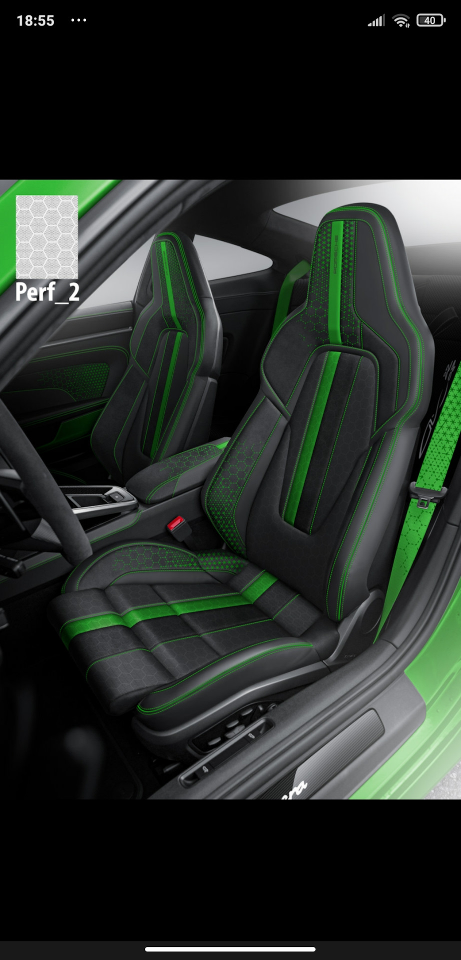 Не плохо! Я бы сделал разную перфорацию в центрах сидений, т.е. основной узор допустим треугольники, а в полосах обычную, но с разным диаметром (нисходящую из центра), что бы добавить ещё больше замороченности салону. Или на зелёной полосе один размер, на чёрной чуть больше. Мне кажется когда будет одинаковая перфорация по всей повернхности, потеряется смысл такой заморочки с полосками. Но это лично моё мнение, на истину не претендую!