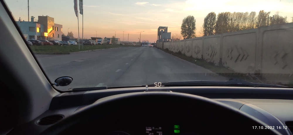 Общее впечатление положительное, считывать скорость стало намного удобнее в движении, меньше угол отклонения глаз от проезжей части, что повышает безопасность движения, особенно в городе в плотном движении.