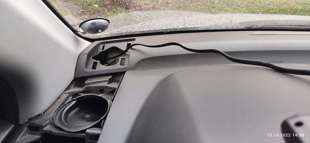Установка очень быстрая и не сложная, провод протянул под панелью через заглушку динамика.