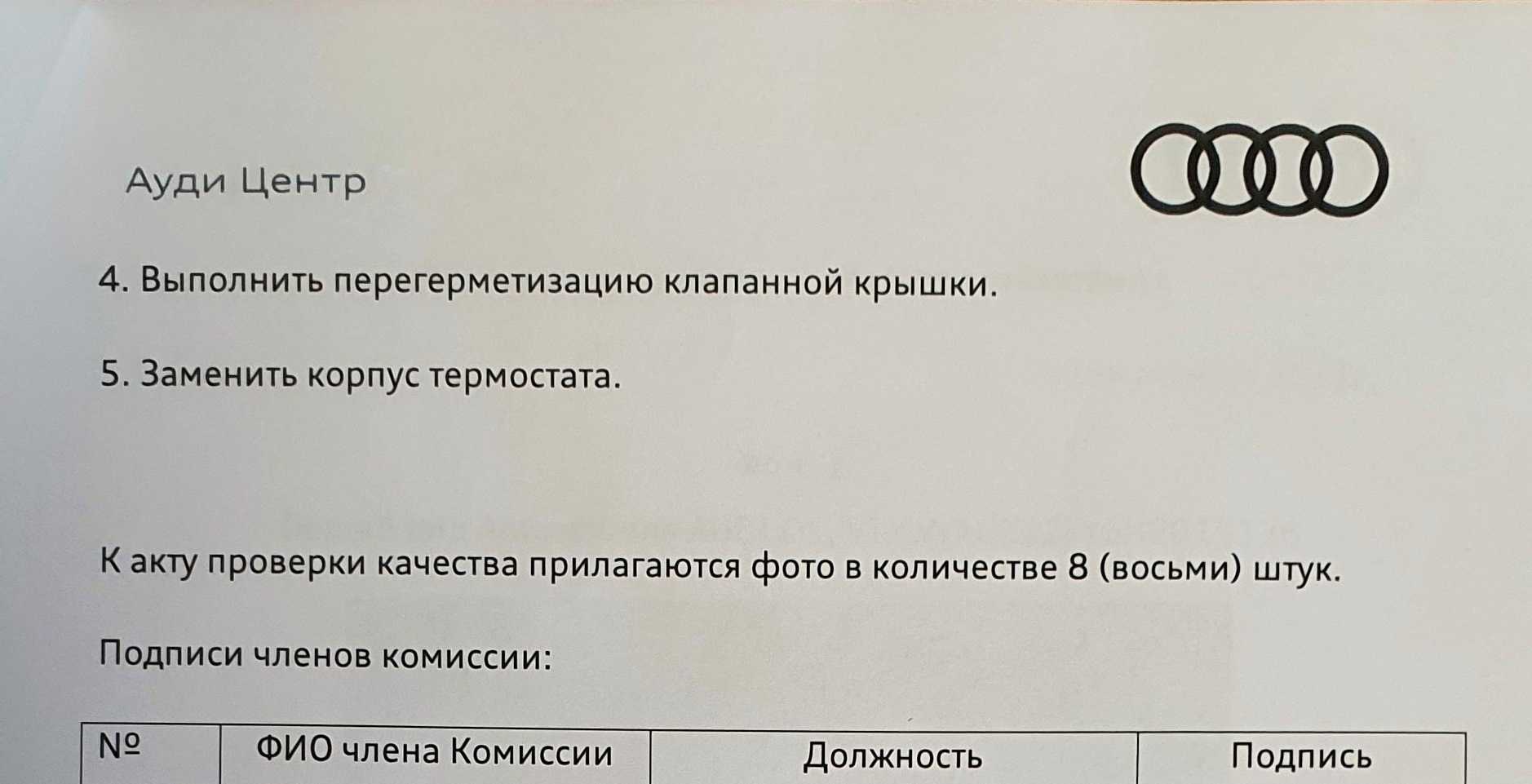 Удивительно как иначе и относительно нормально начинает реагировать гарантийный отдел дилера и ауди в России когда ты заходишь к дилеру и импортёру с претензией о немедленном устранении существенного недостатка товара. Всем юр лицам были отправлены почтой письма с соответствующими требованиеми.
