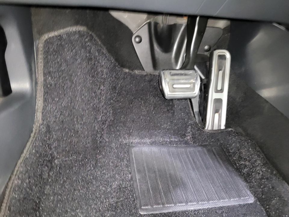 Затем вспомнил про ковры Euromat, присмотрелся, в итоге их и заказал. Хотел попробовать их в деле для сравнения, так как у них больше площадь покрытия пола по сравнению с Seintex, а цены почти сравнялись (у водительского выше площадка под левую ногу, у переднего пассажира закрыта площадка под правую ногу и оба передних заходят под сидения).